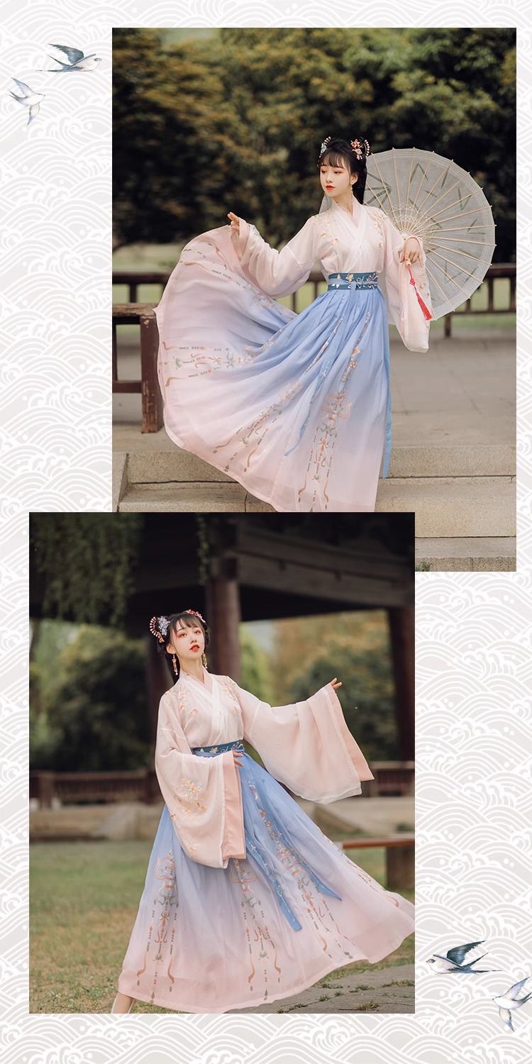 Оригинальная Женская юбка Hanfu 2024, новинка [возвращение], с перекрестным воротником, на талии, костюм в стиле Вэй и Цзинь, весенняя одежда, оригинальные товары