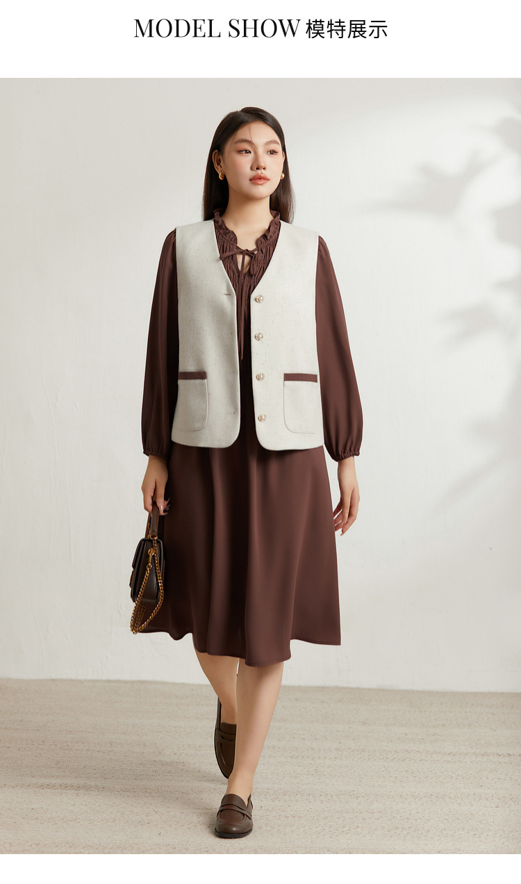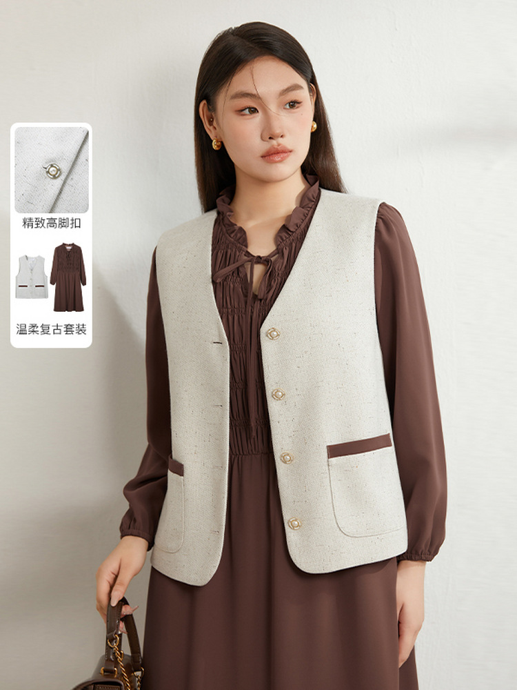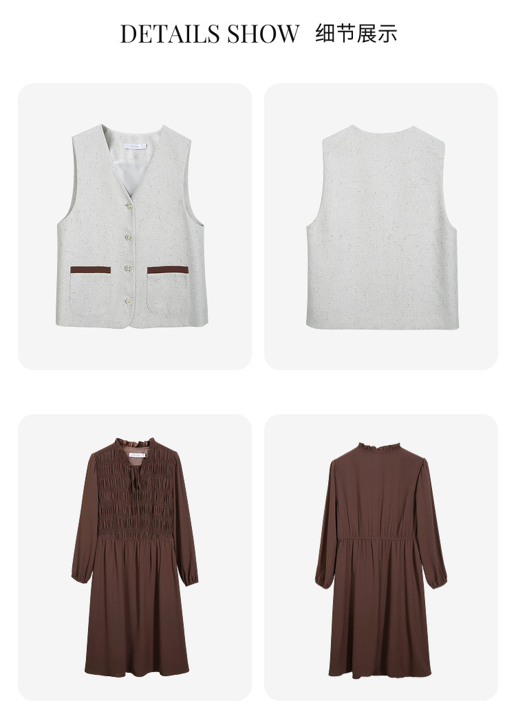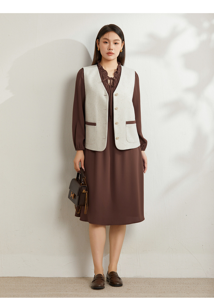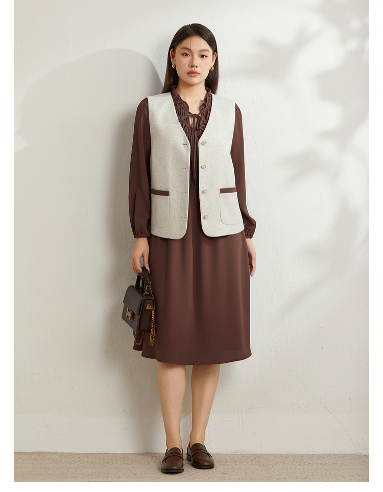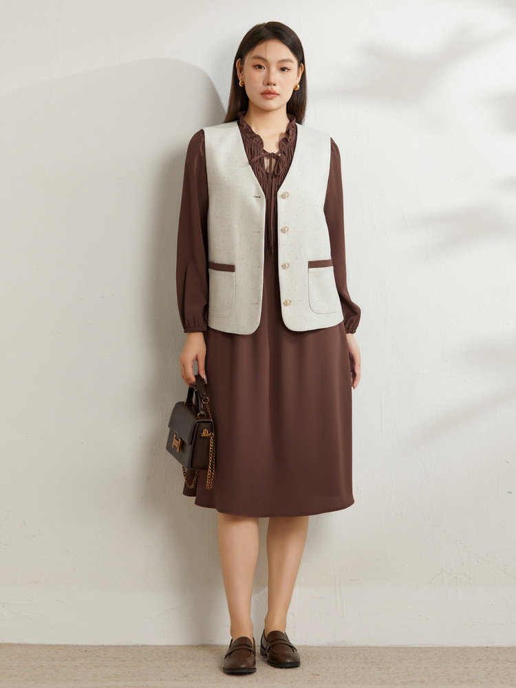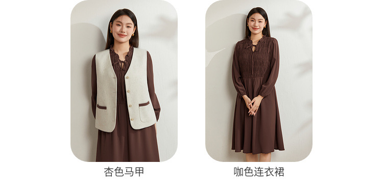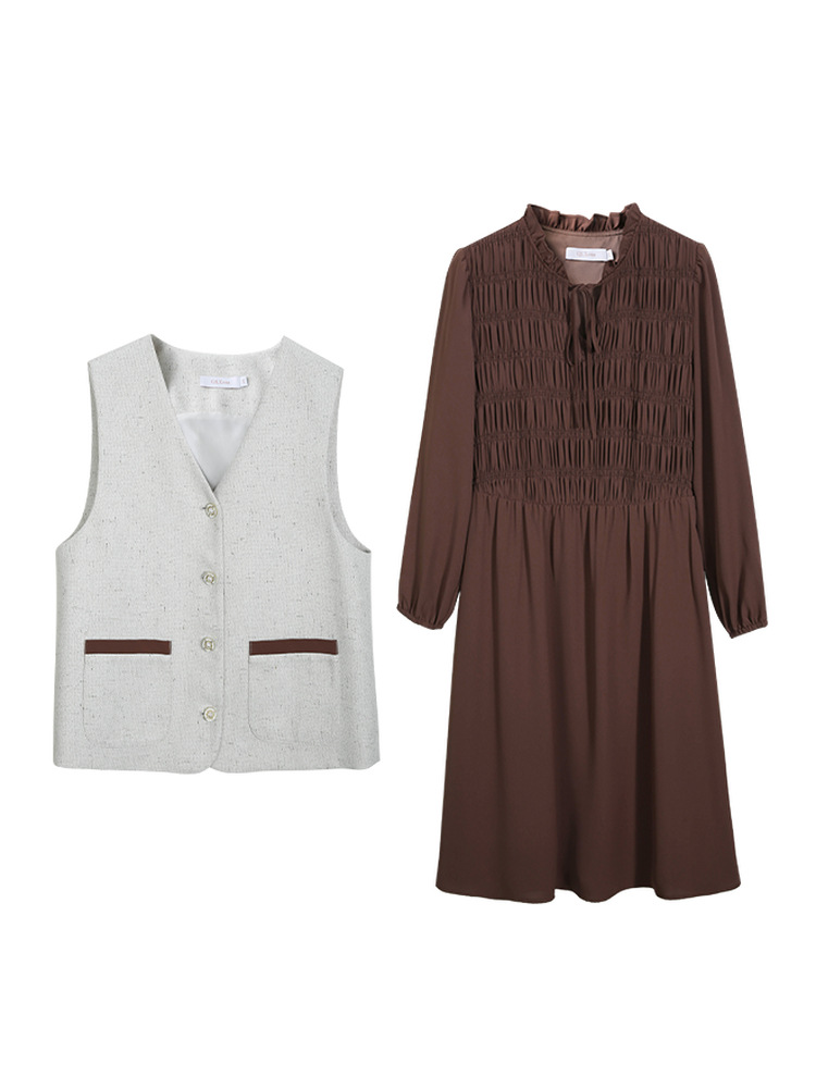 Абрикос [Жилет QI5469]; Коричневый цвет [Платье QI5472]
