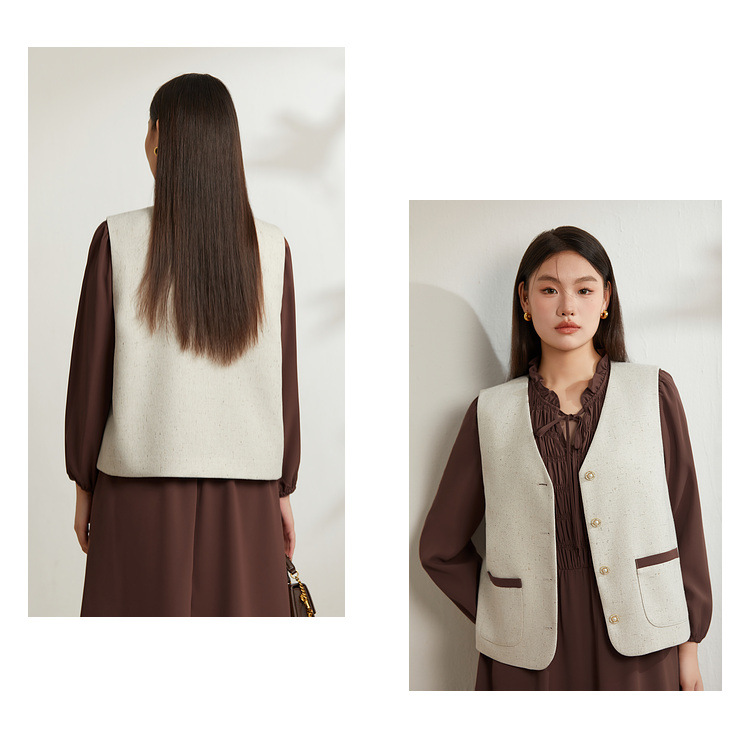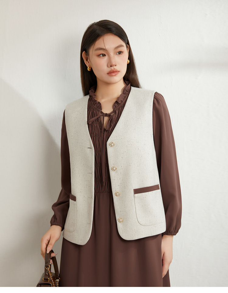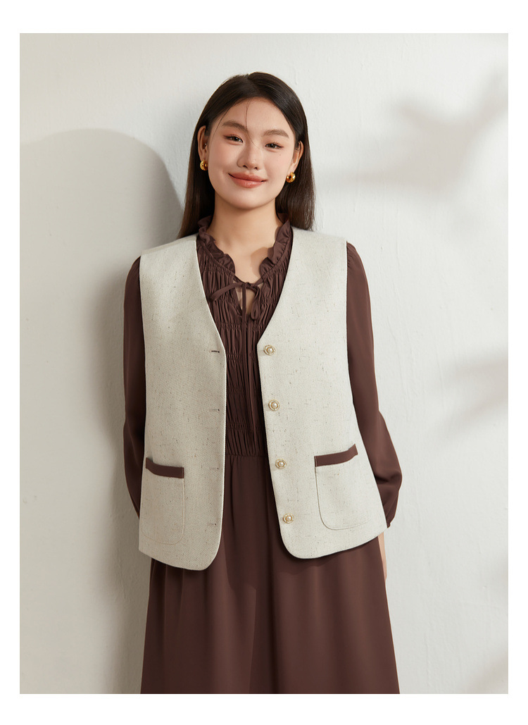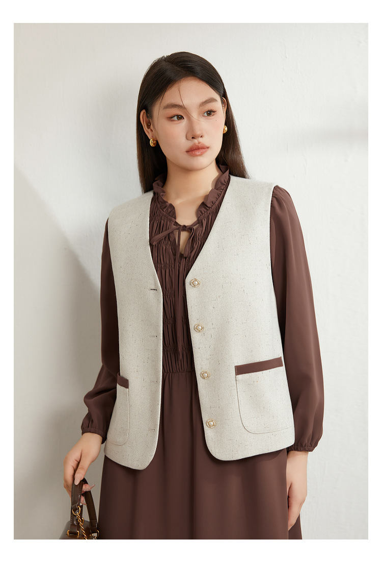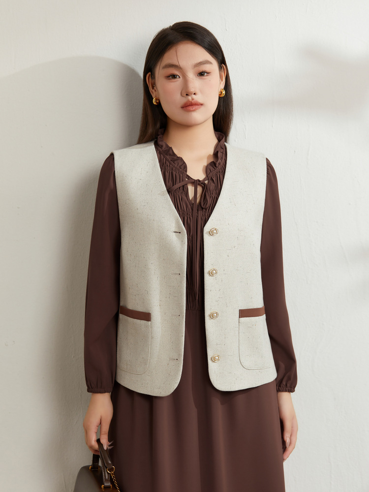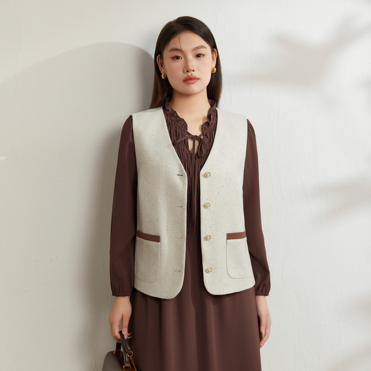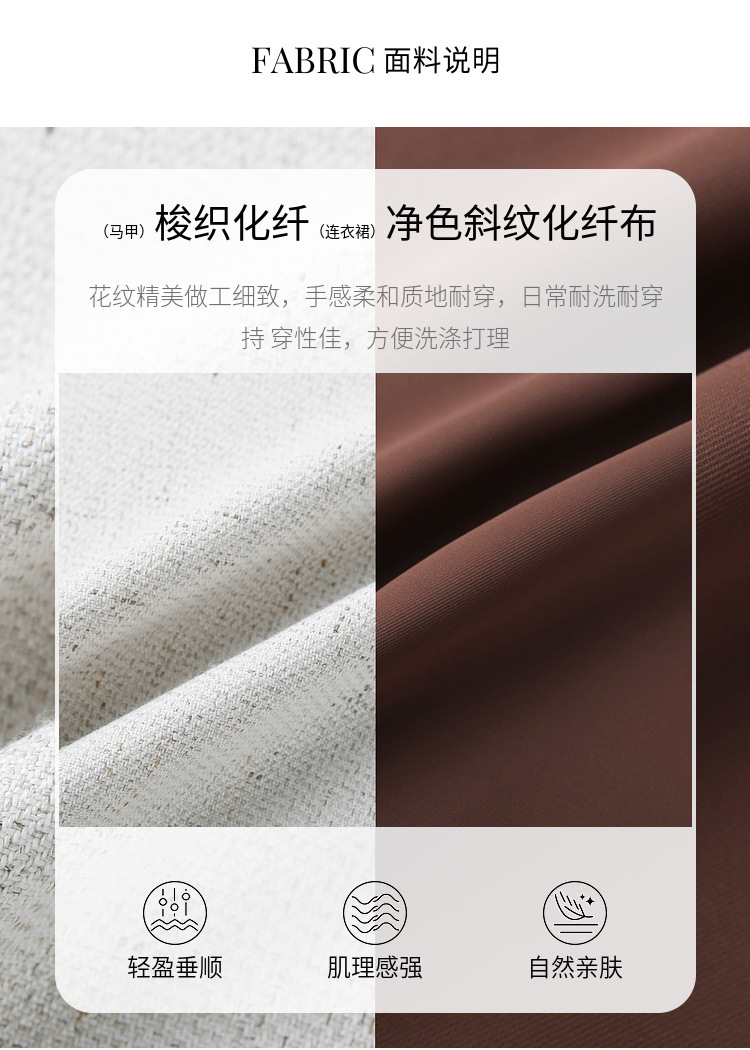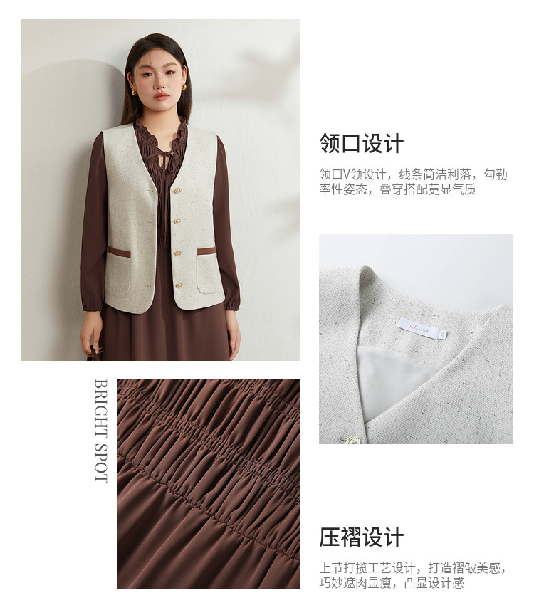 Абрикос [Жилет QI5469]; Коричневый цвет [Платье QI5472]