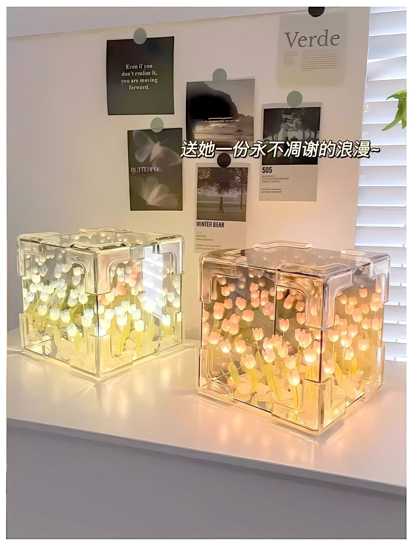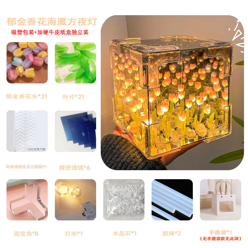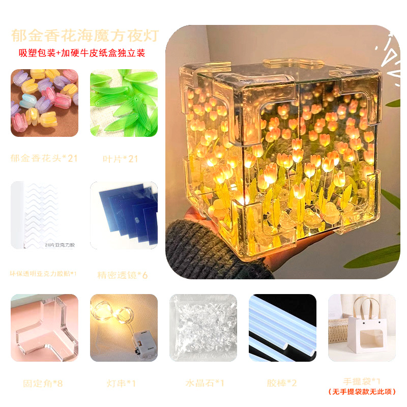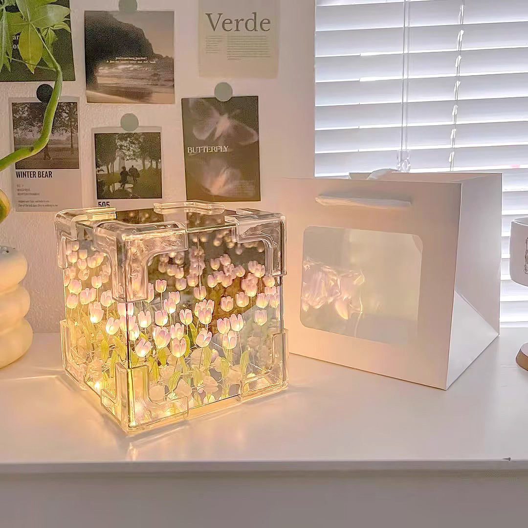 Ручной работы DIY цветок море трехмерный куб тюльпан ночник Материал Пакет Роза подарок для подруги пары подруг