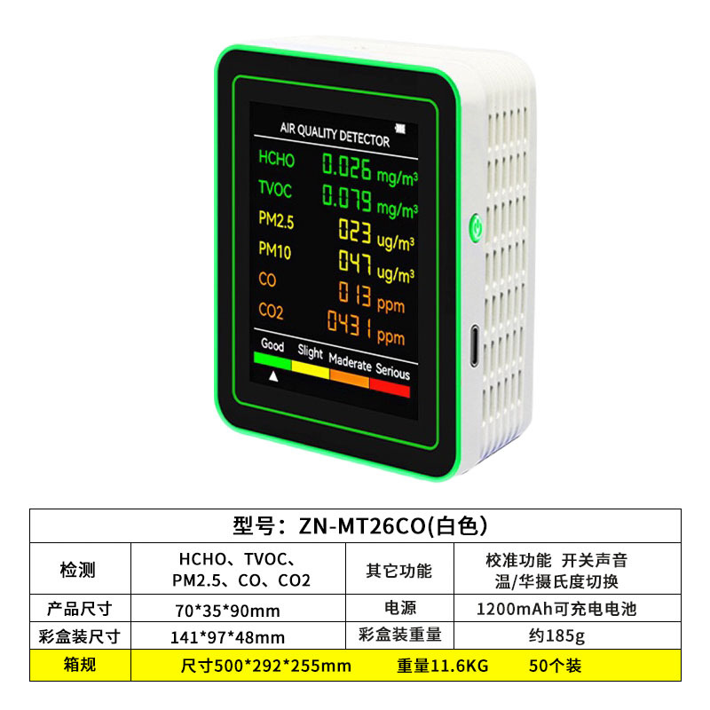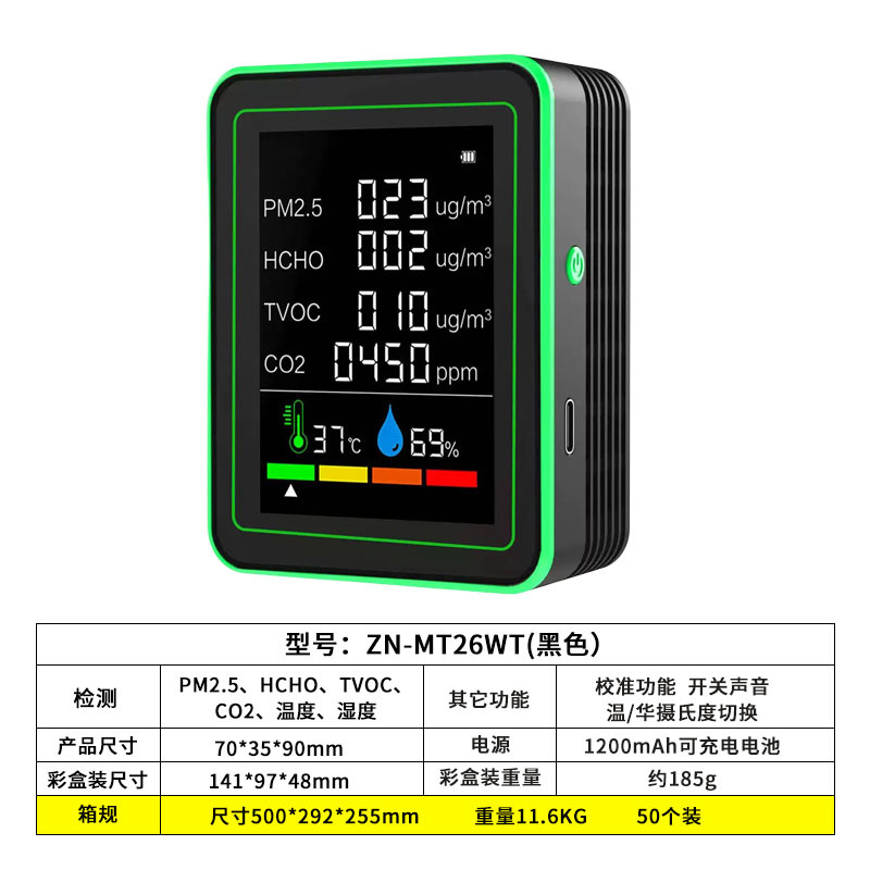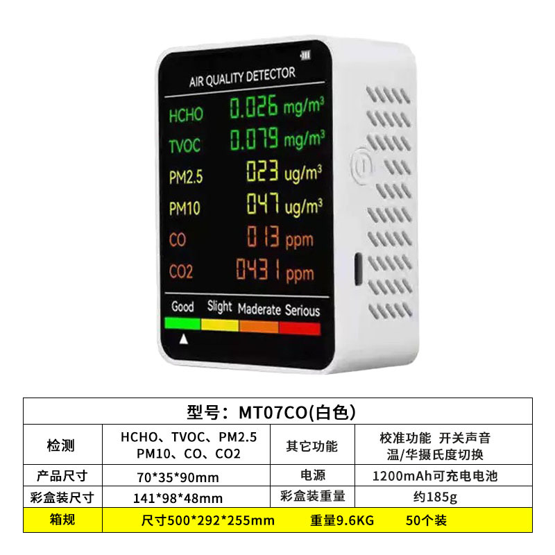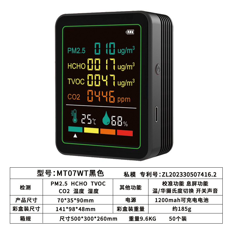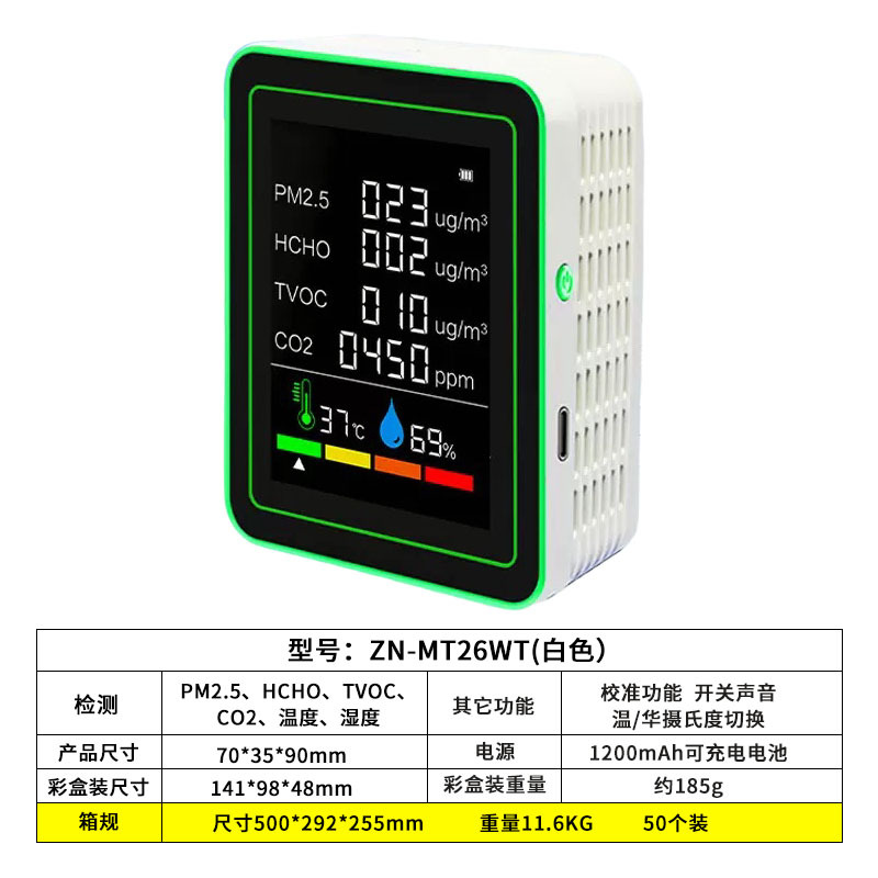 Детектор формальдегида 6-в-1, детектор углекислого газа pm2,5, мониторинг TVOC, монитор качества воздуха CO2