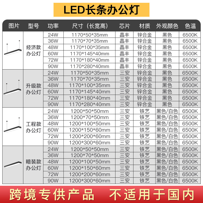 Экономическая модель 1170*50*35/24Вт; Экономичная модель 1170*70*35/36Вт; Экономичная модель 1170*100*35/48Вт; Экономичная модель 1170*145*40/60Вт; Экономичная модель 1170*180*40/72Вт; Экономичная модель 1170*280*40/90Вт; Инженерная модель 1200*50*50/24Вт; Инженерная модель 1200*70*50/36 Вт; Инженерная модель 1200*100*50/48Вт; Инженерная модель 1200*150*60/60 Вт; Инженерная модель 1200*200*60/72W; Инженерная модель 1200*300*60/90W; Аксессуары Фангтонг