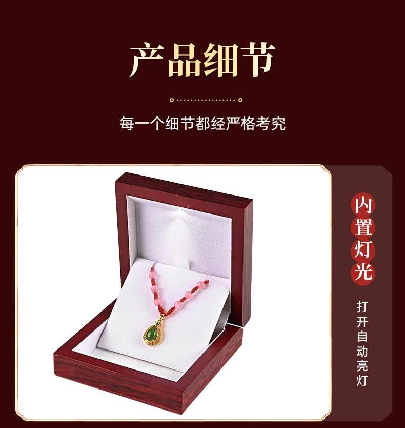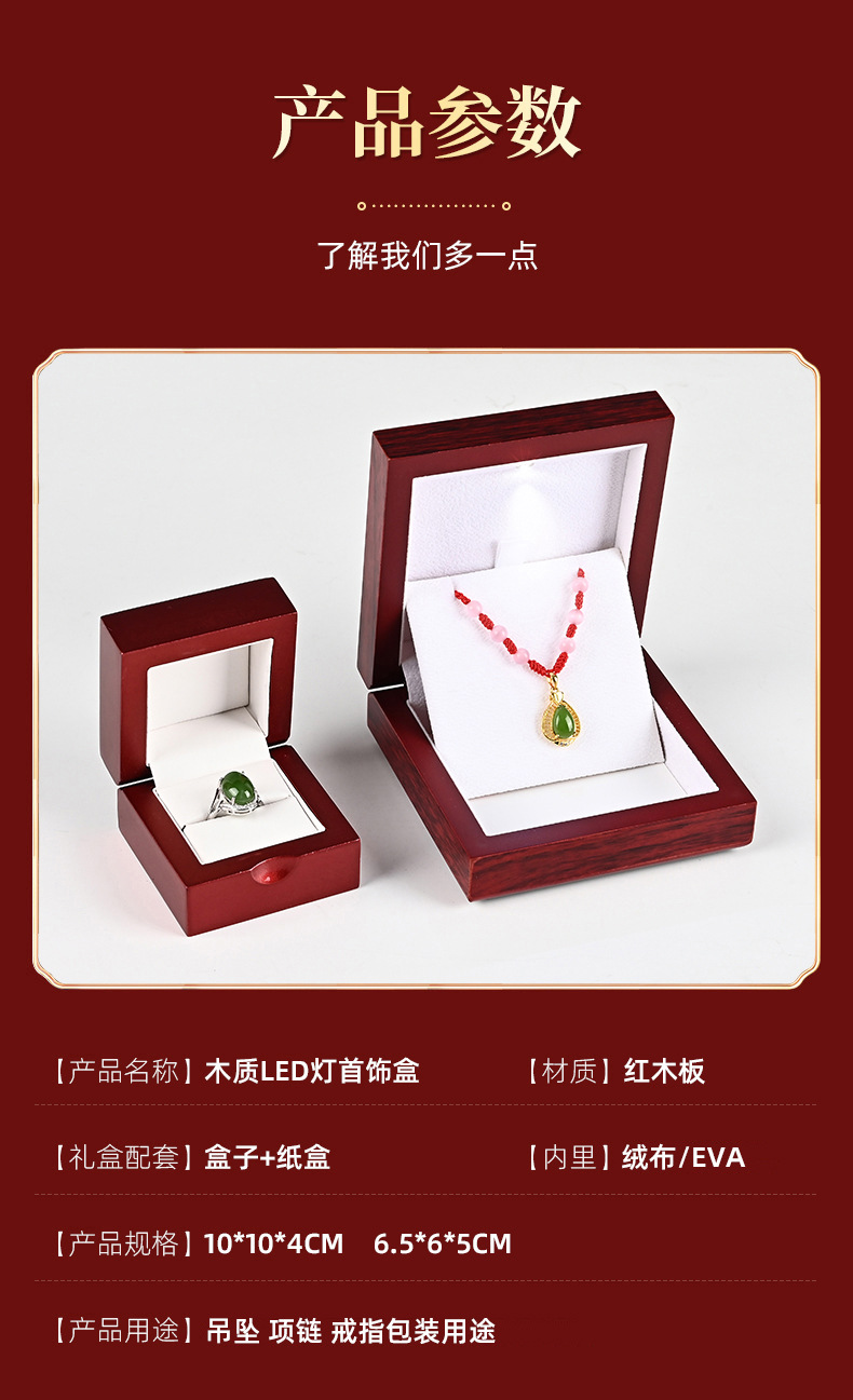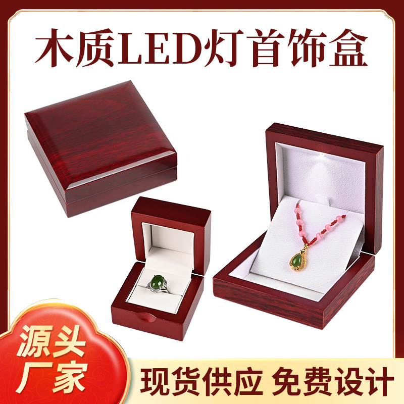 Деревянная шкатулка для украшений с крышкой с LED-подсветкой для колье и кулона, для хранения ювелирных изделий, для международной торговли