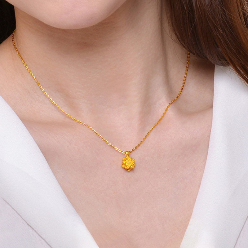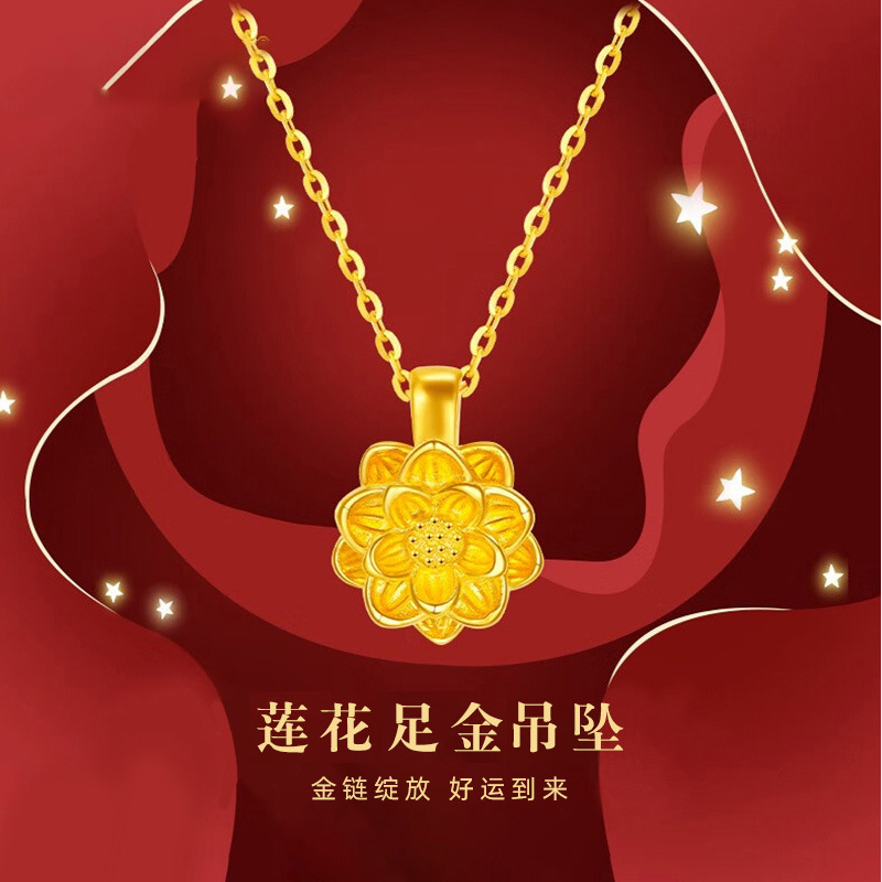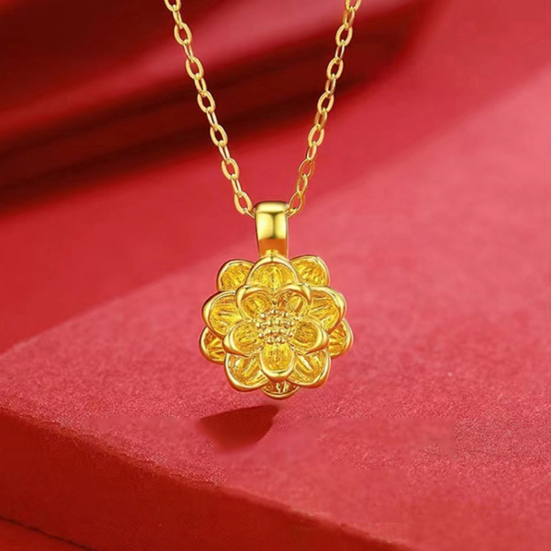 Кулон «Золотой лотос» из чистого золота 999 пробы, ожерелье из цельного золота, для привлечения клиентов в косметической индустрии, оптовая продажа, национальный тренд, мода