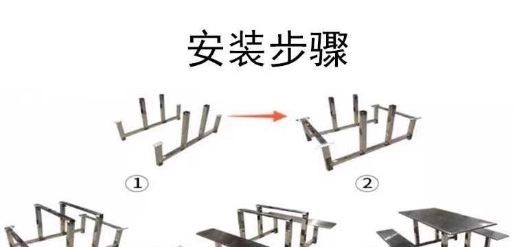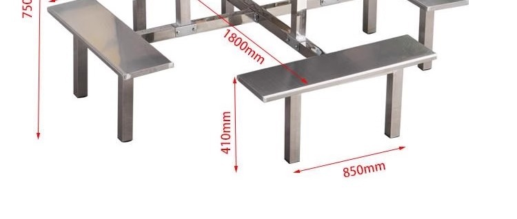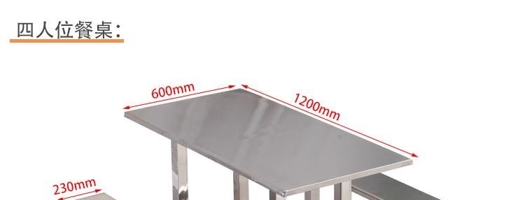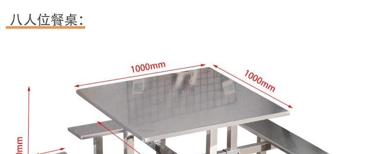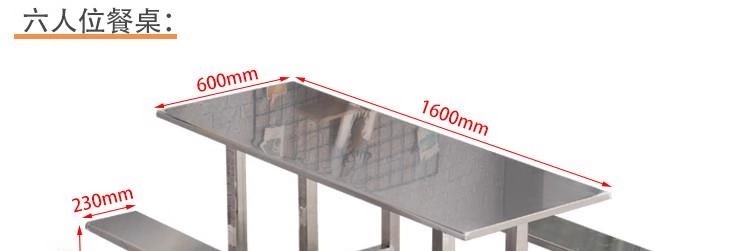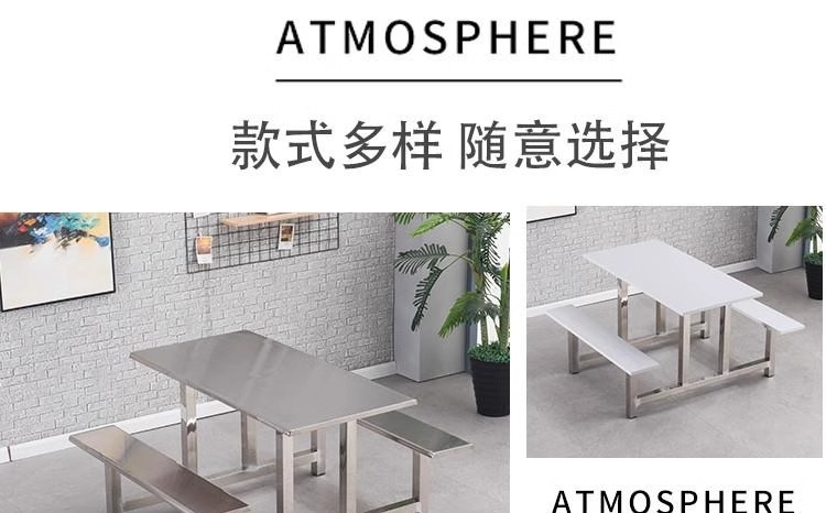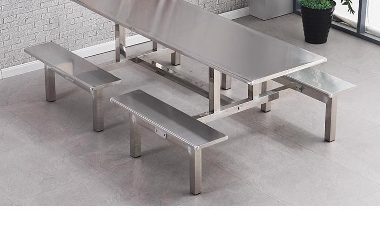 不锈钢餐桌学校员工食堂连体餐桌4人6人8人位职工餐厅组合餐桌椅