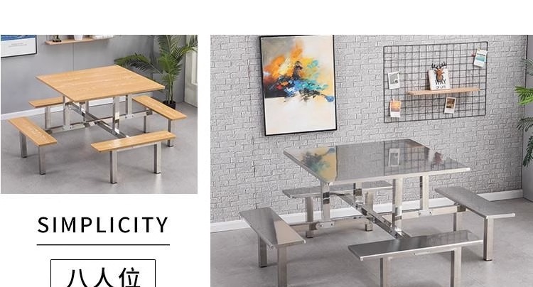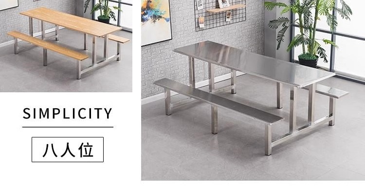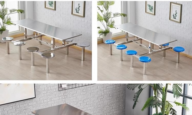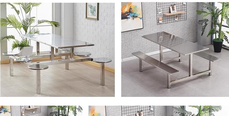 Обеденный стол из нержавеющей стали Столовая школьного персонала цельный обеденный стол 4 человека 6 человек 8 человек Комбинация ресторана для персонала обеденный стол и стул