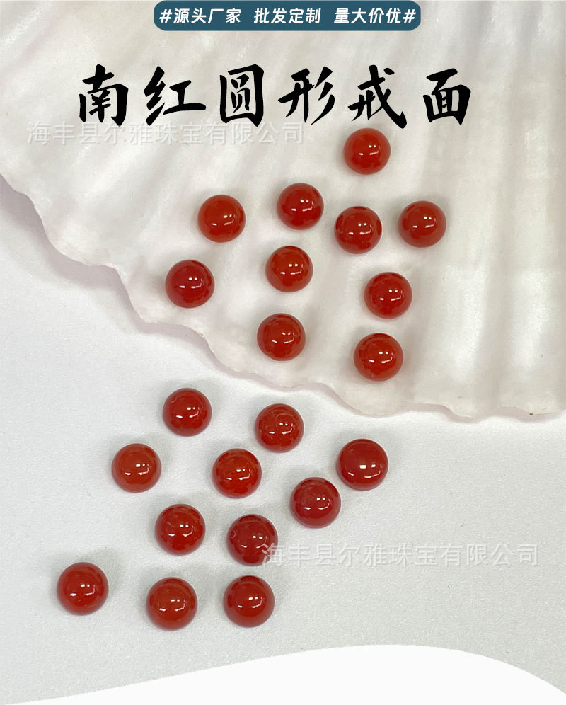 Южно-красные бусины-конверты, круглые, однотонные, с плоским дном, оголенная каменная поверхность кольца