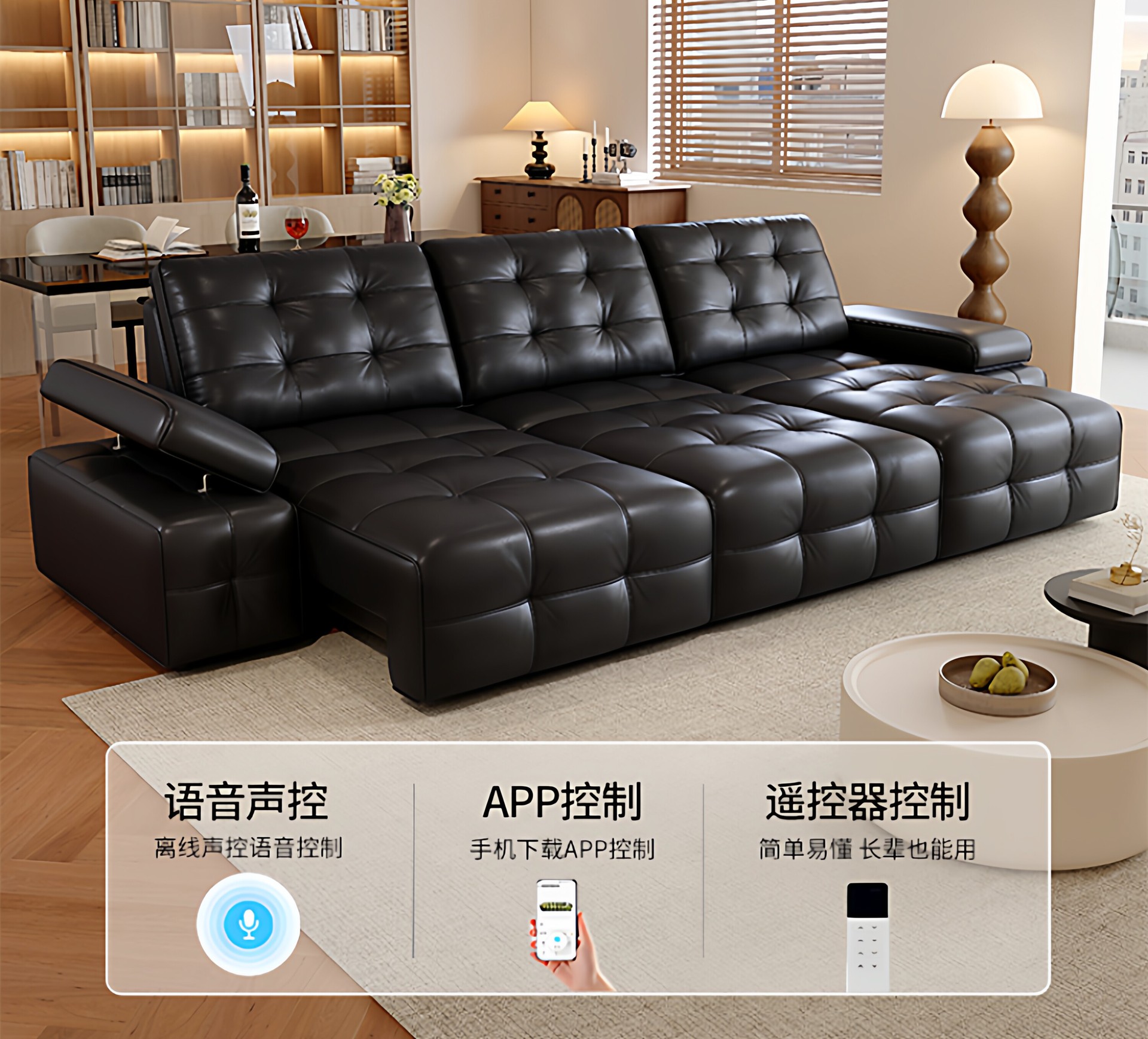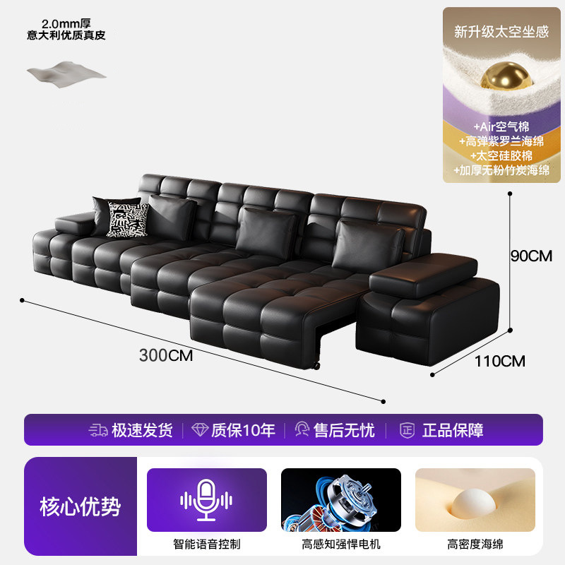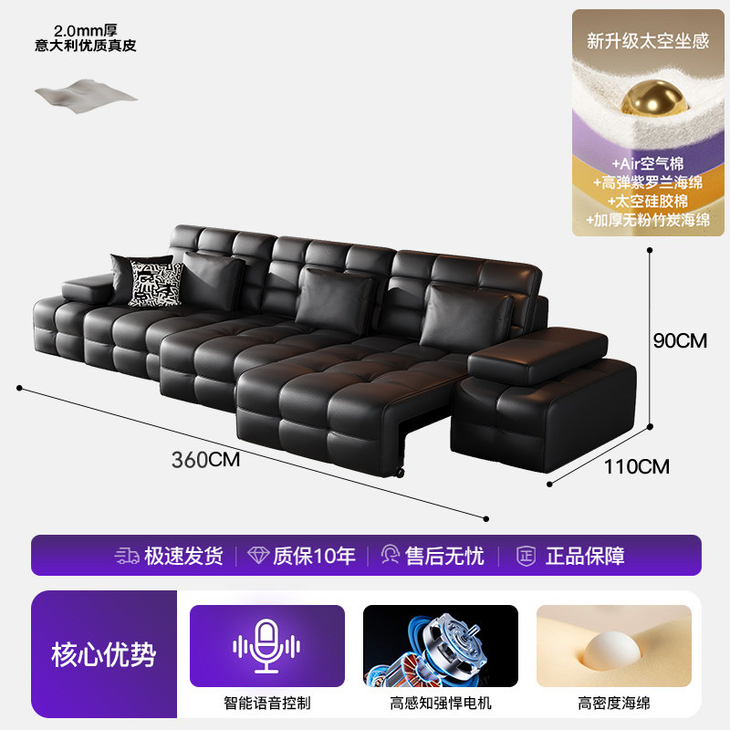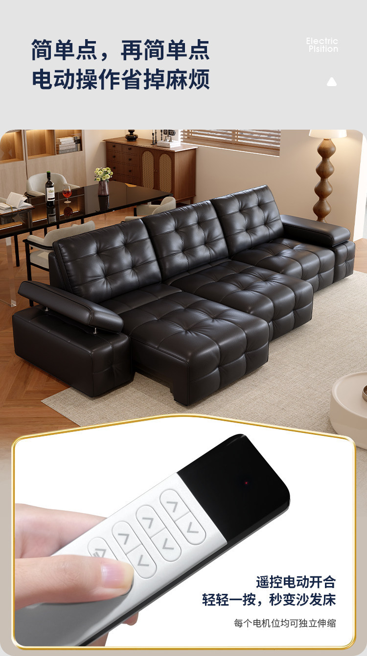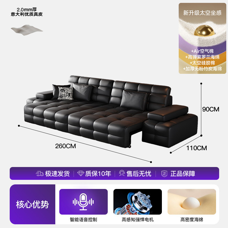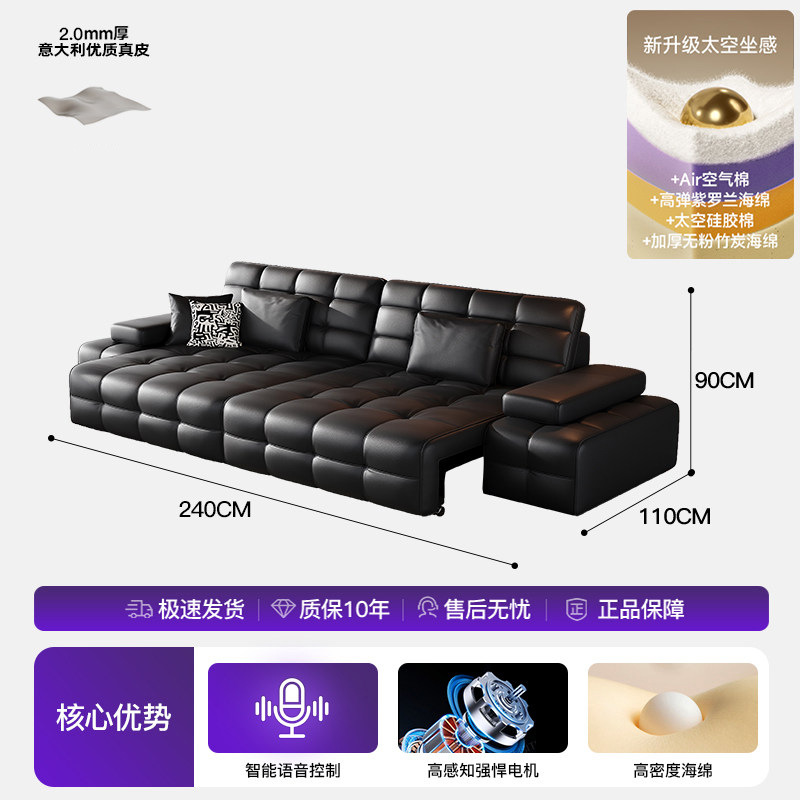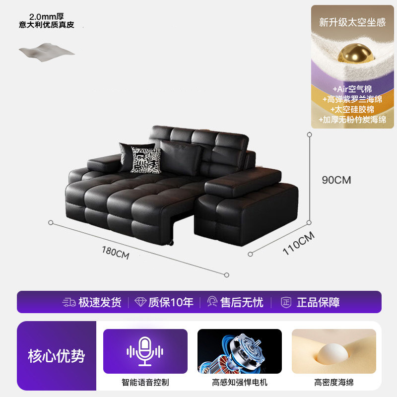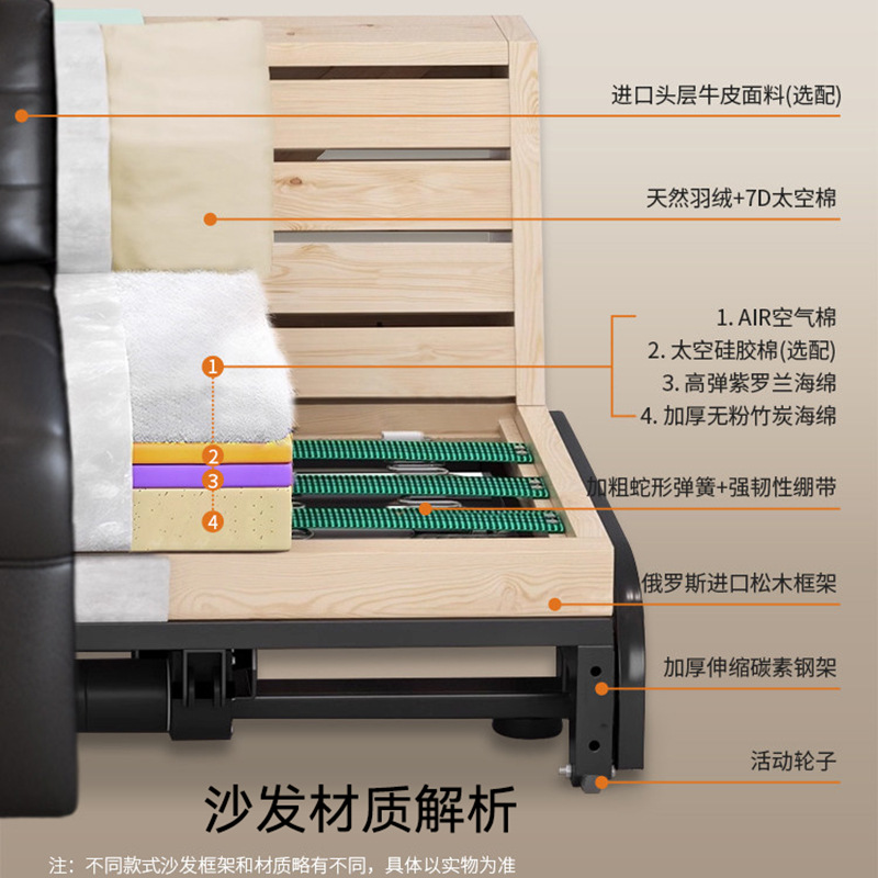 Полностью автоматический умный электрический кожаный диван-кровать для гостиной, современный простой кожаный диван для небольшой квартиры.
