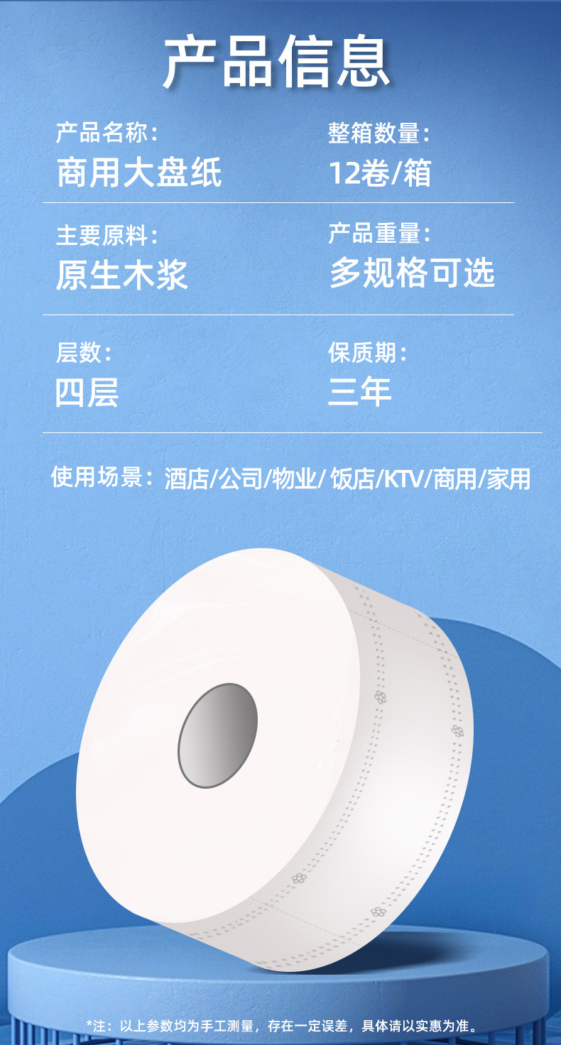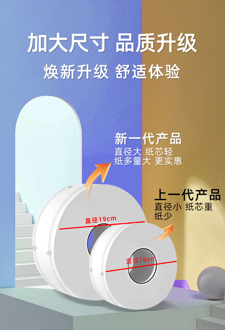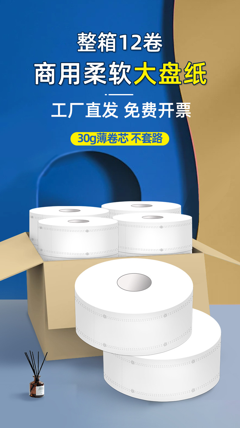 Большой рулон туалетной бумаги отель Специальная большая тарелка бумаги Коммерческая полная коробка оптом Туалетная ткань Бытовая доступная