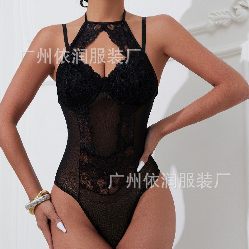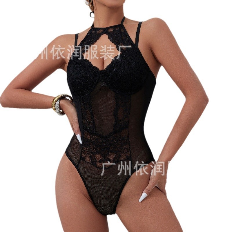 Европейско-американский прозрачный кружевной боди с вырезами и сетчатыми вставками в уличном стиле, европейско-американский сексуальный дизайн