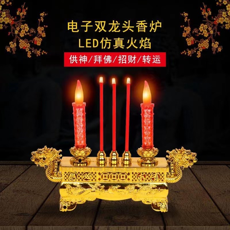 Светодиодная электронная курильница длинная лампа курильница для благовоний подсвечник поклонение Будде Богу двойной дракон подключаная электронная курильница для благовоний свеча