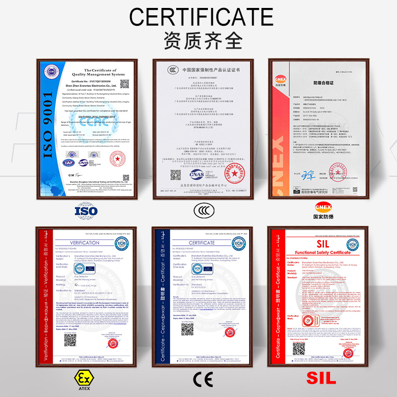 детектор углекислого газа; Детектор горючего газа; детектор метана; Детектор угарного газа; Детектор сероводорода; детектор кислорода; Детектор газа аммиака; Детектор хлора; Детектор газообразного водорода; Детектор формальдегида; Детектор озона; Высокотемпературный зонд для отбора проб дымовых газов; фильтр