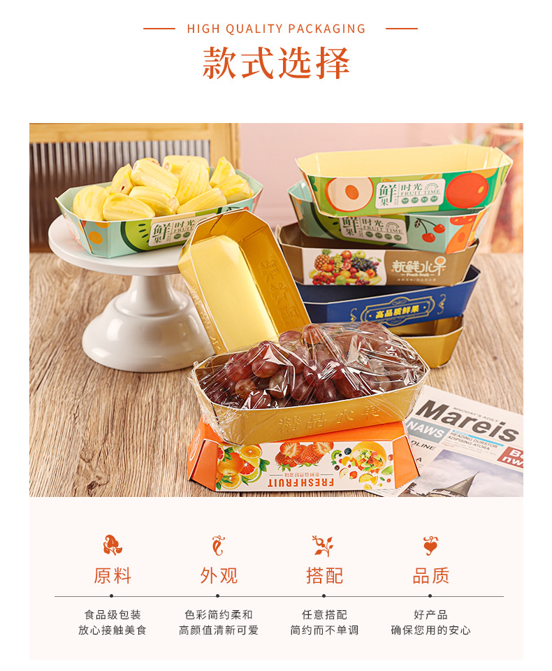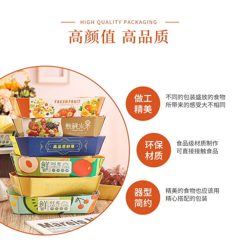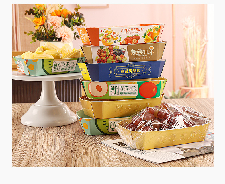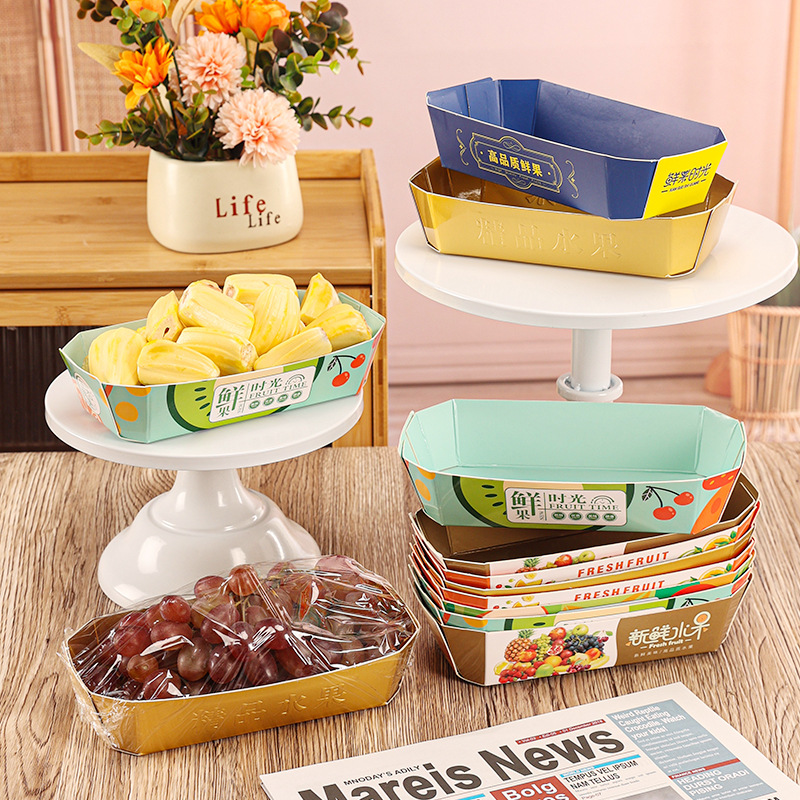 Тупой золотой свежий фруктовый бумажный лоток; Голубая бумажная подпора для свежих фруктов; Матовый лоток из светлого золота; Свежий бумажный лоток времени; Специально синий свежий фруктовый бумажный лоток; Оранжевый свежий фруктовый лоток