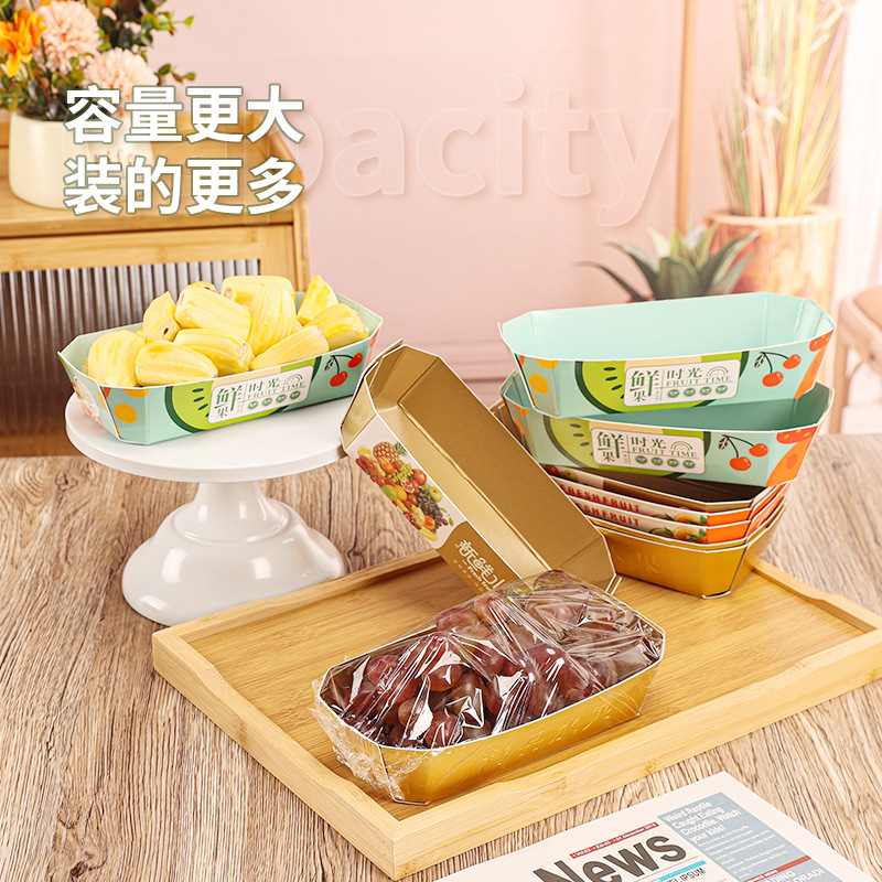 Фруктовая упаковочная коробка одноразовая Золотая лодка для овощей и фруктов, лоток для бумаги, креативная вишня, клубника, витрина