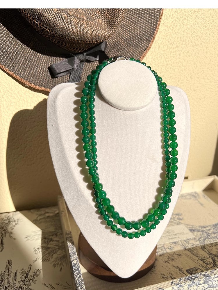 Высокое качество натуральный зеленый халцедон бисер шейный цепи легкий роскошный новый темперамент дикий нефритовый агат бусиновая цепочка завод оптом