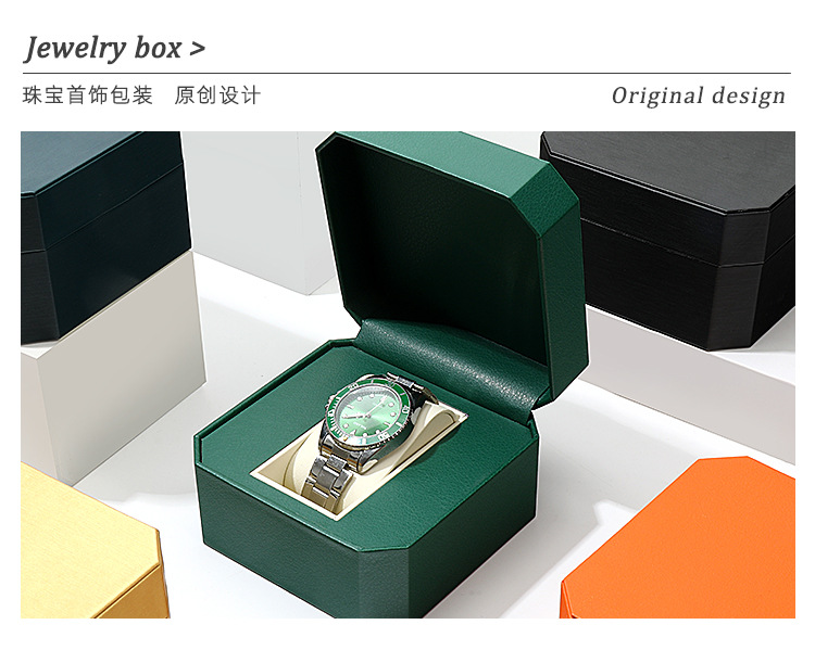 Восьмиугольная коробка для часов из искусственной кожи с прорезью