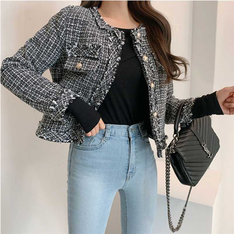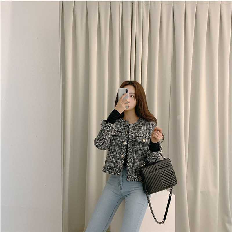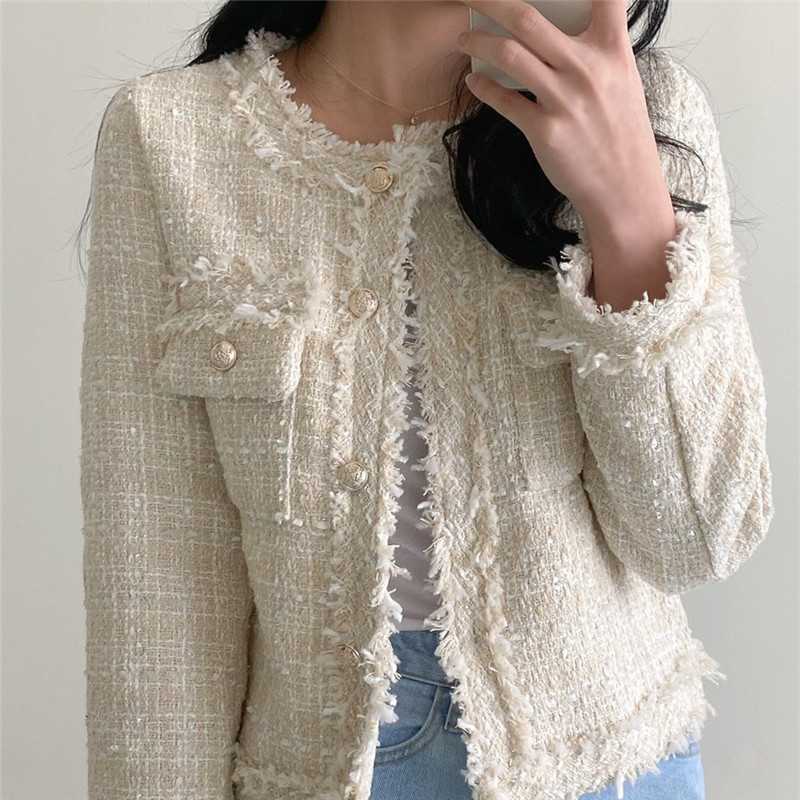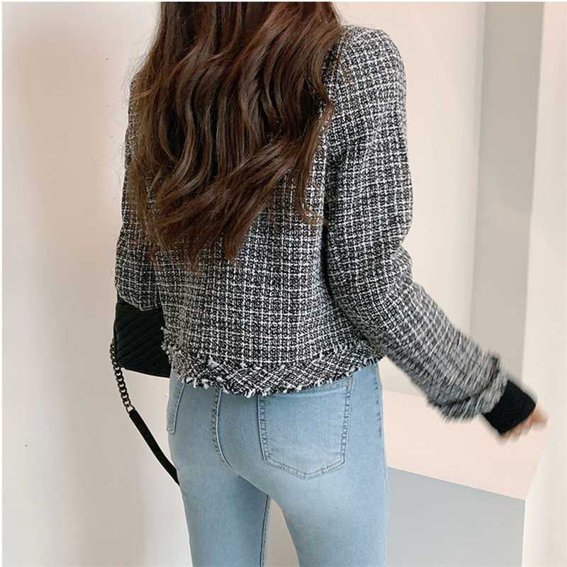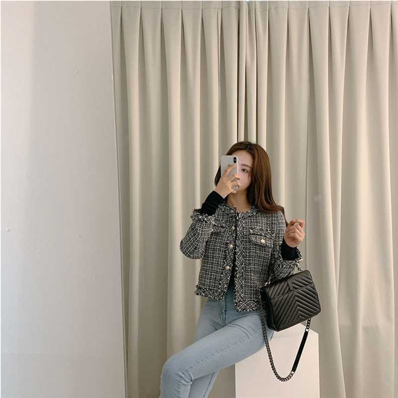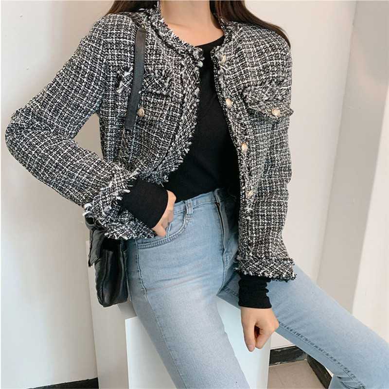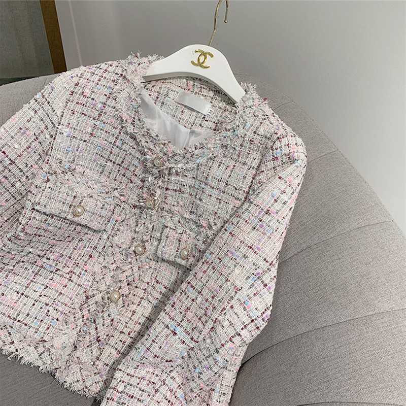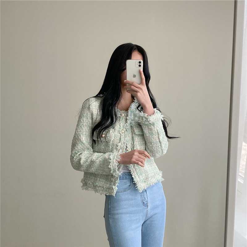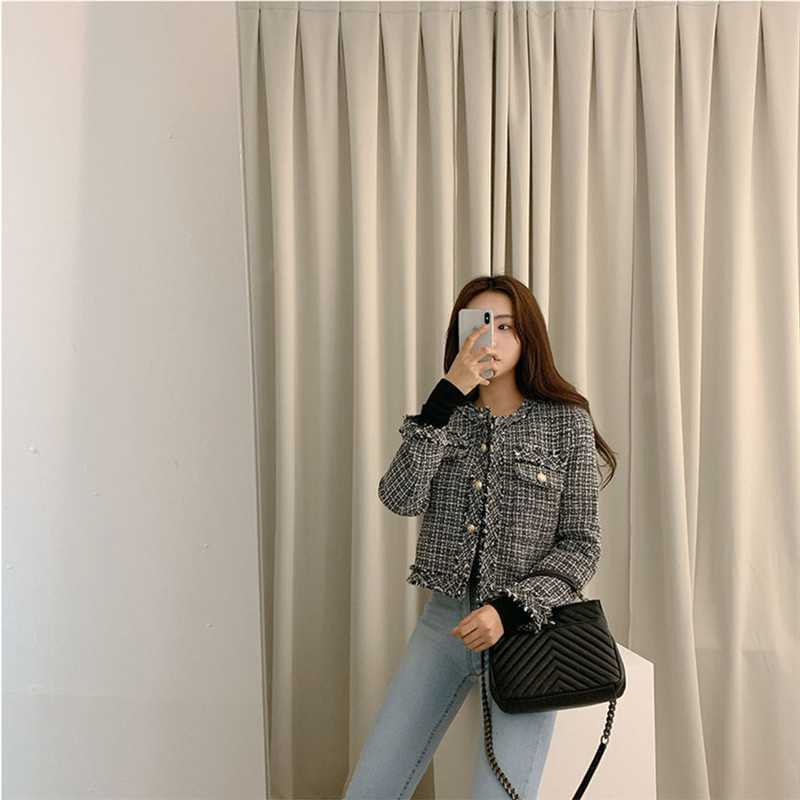 Пальто-кардиган в западном стиле с потертыми краями в стиле Chanel с круглым вырезом, женский весенний новый маленький твидовый короткий топ в Корейском стиле