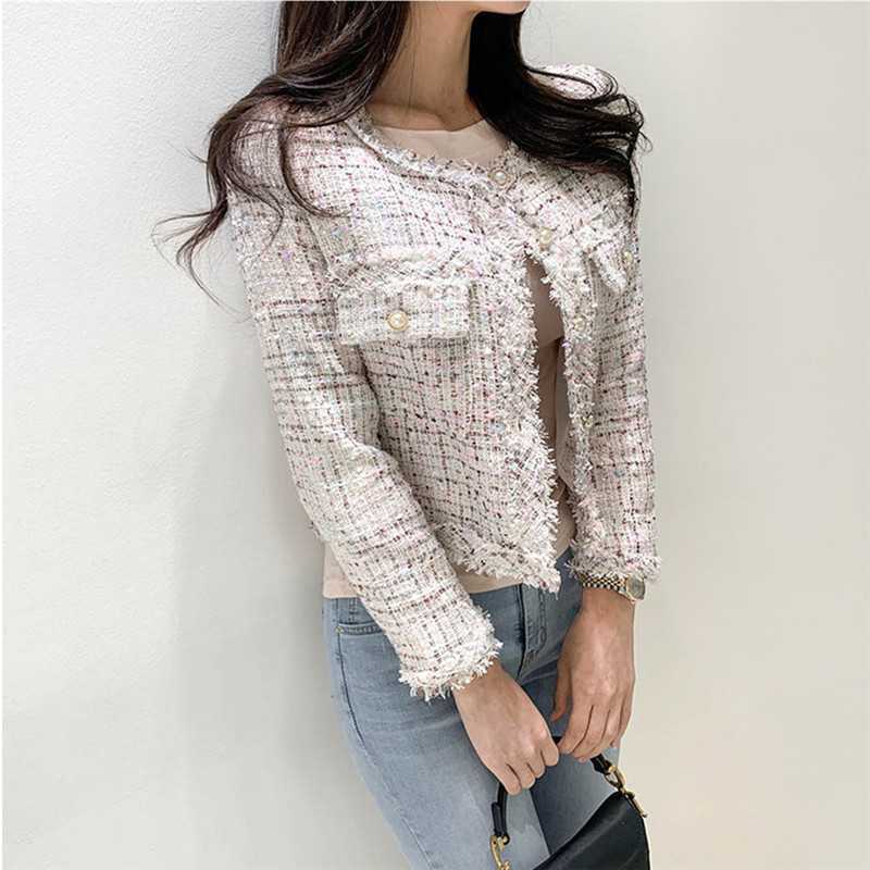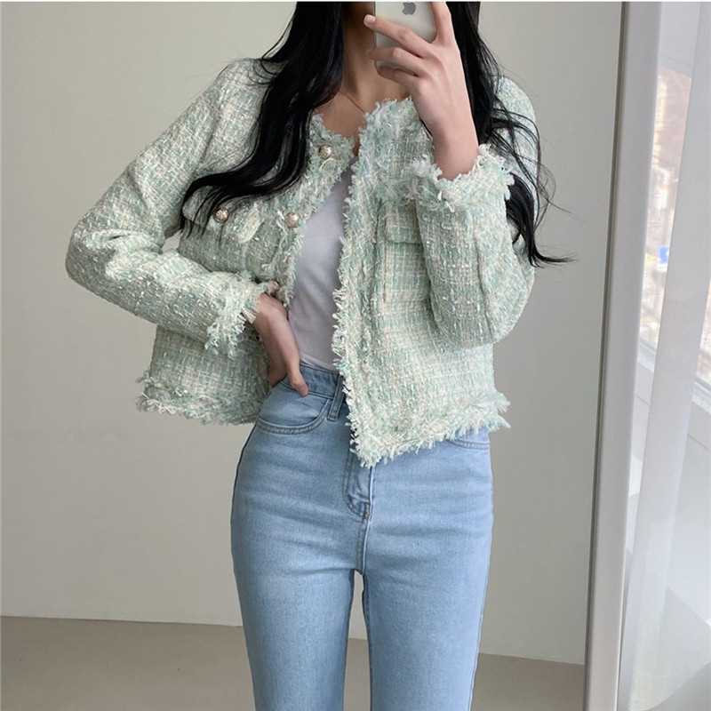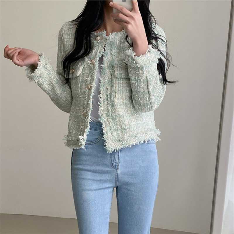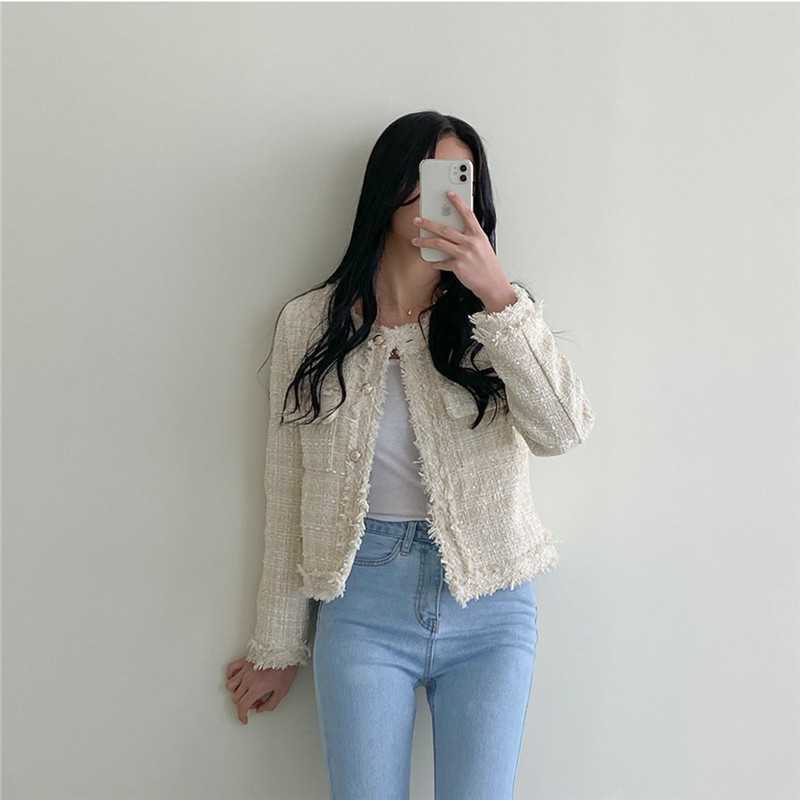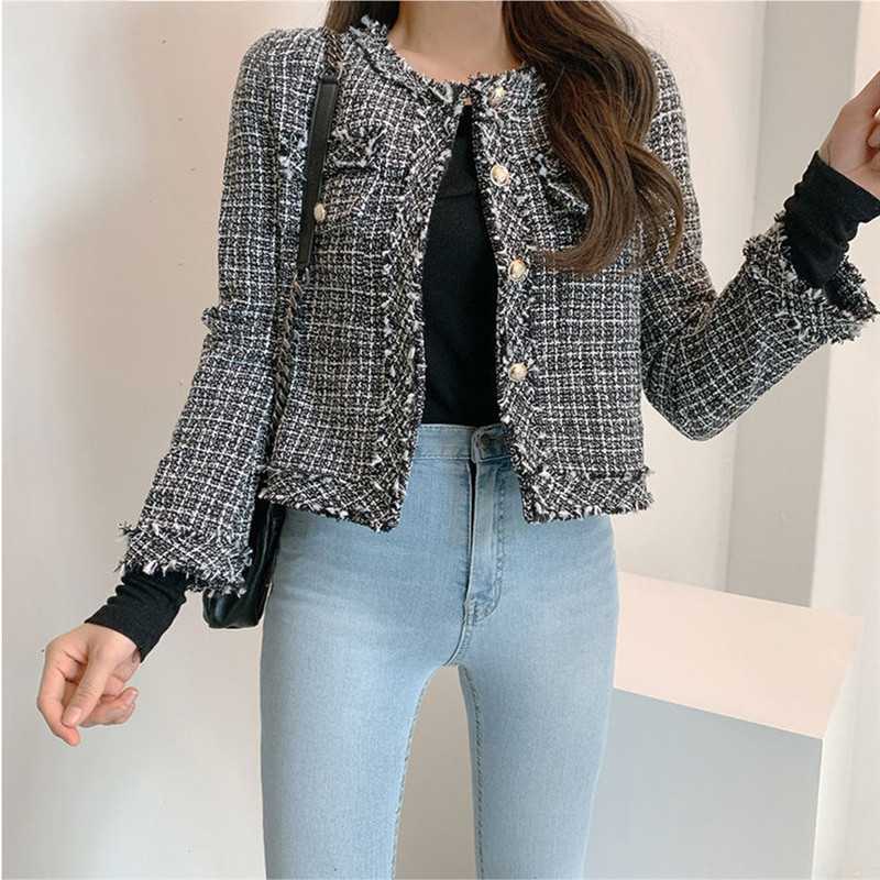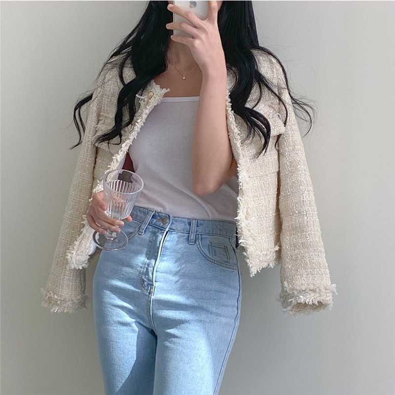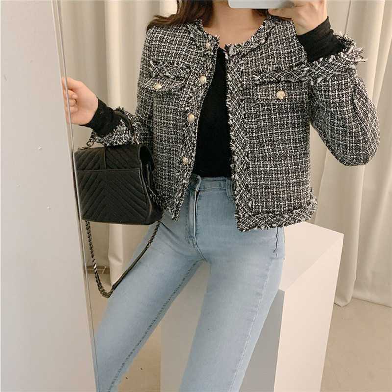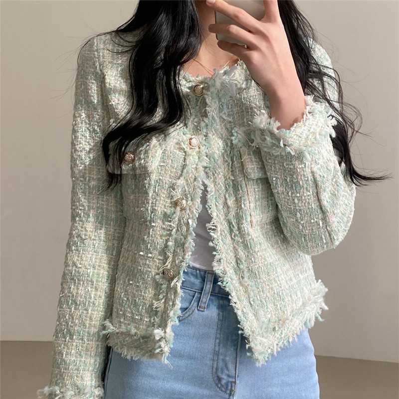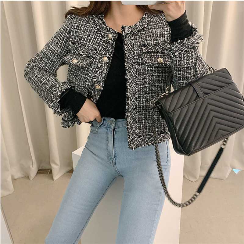 Пальто-кардиган в западном стиле с потертыми краями в стиле Chanel с круглым вырезом, женский весенний новый маленький твидовый короткий топ в Корейском стиле