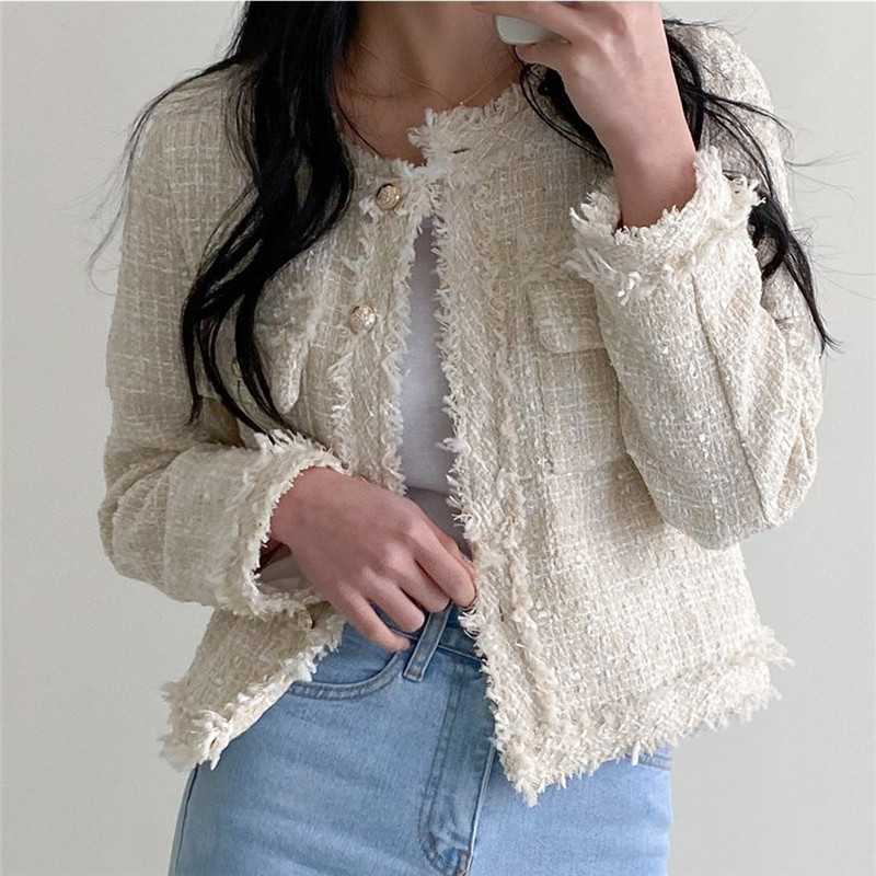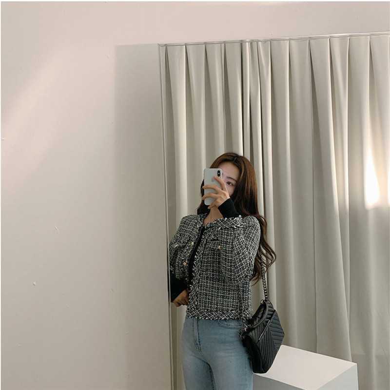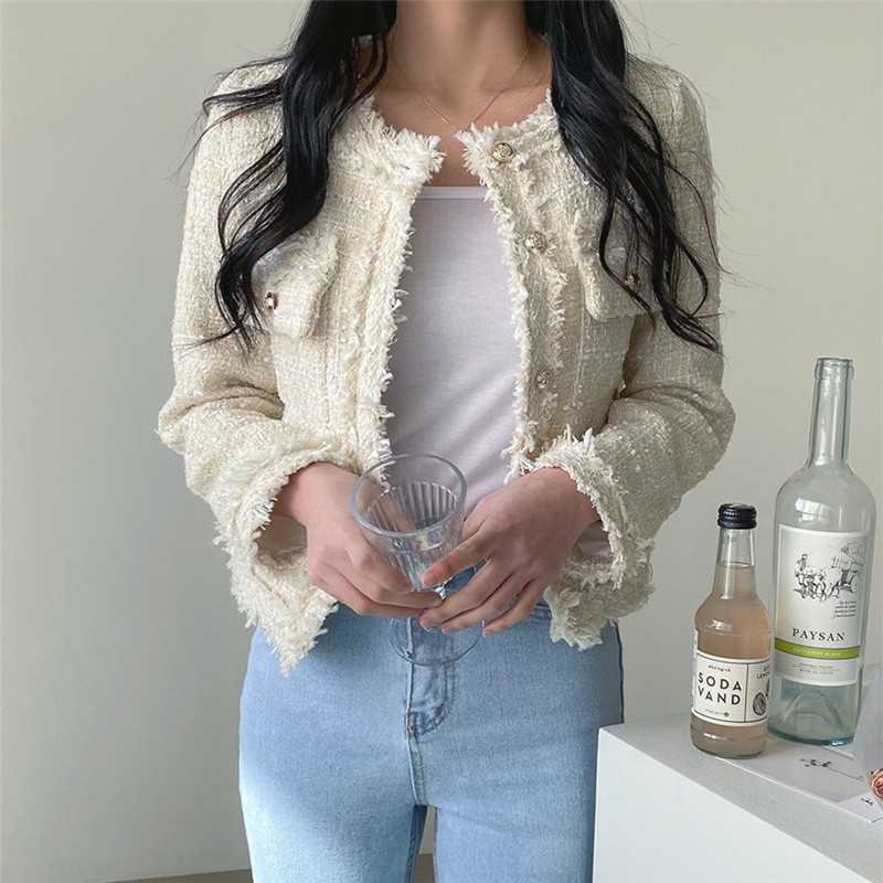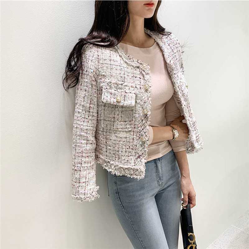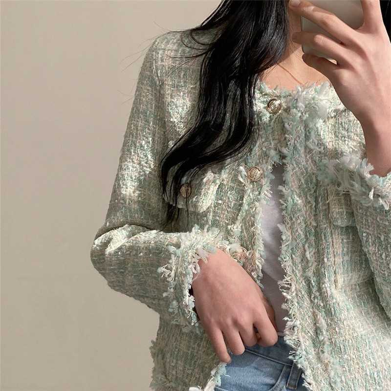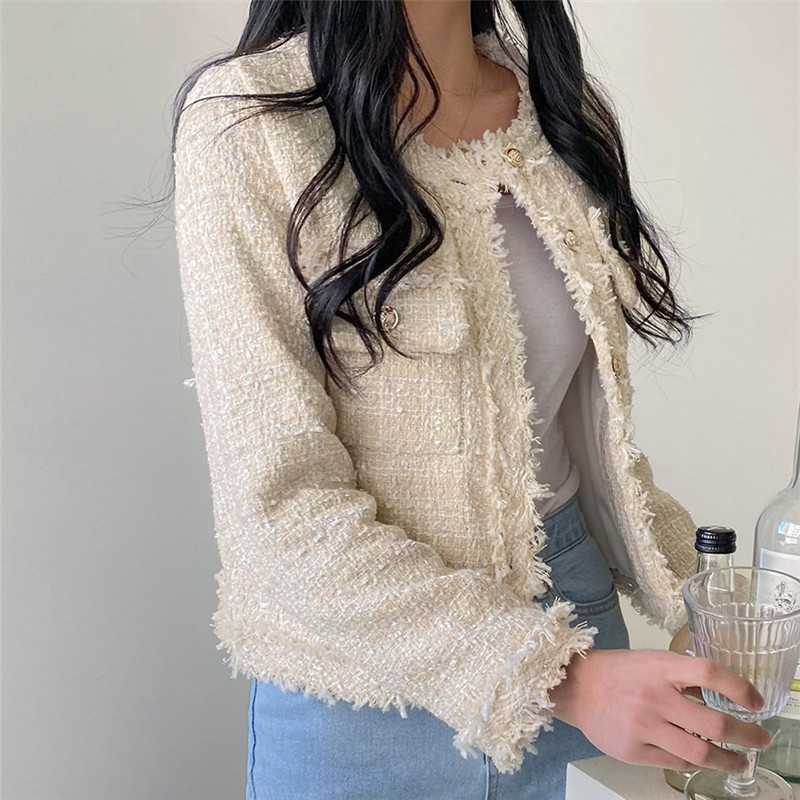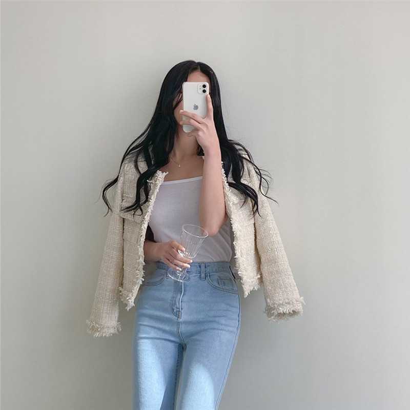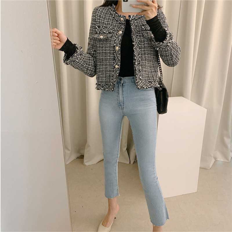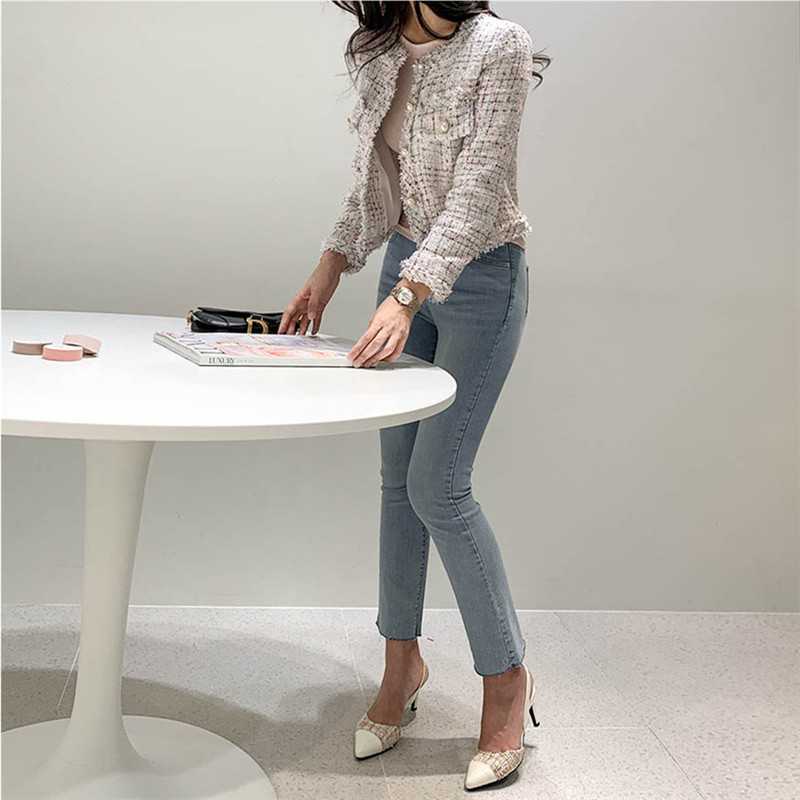Пальто-кардиган в западном стиле с потертыми краями в стиле Chanel с круглым вырезом, женский весенний новый маленький твидовый короткий топ в Корейском стиле
