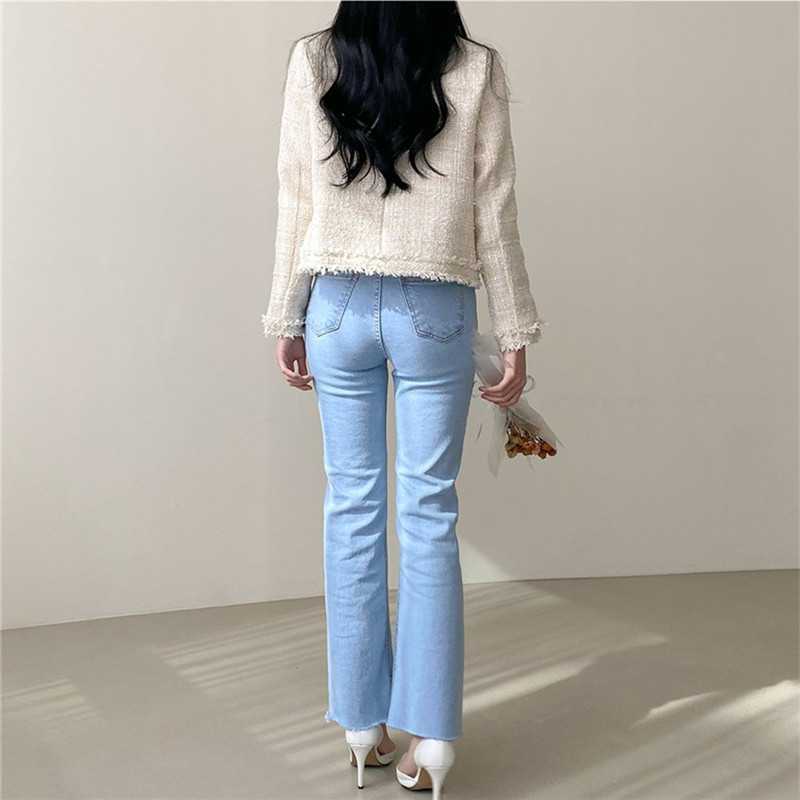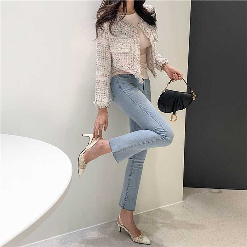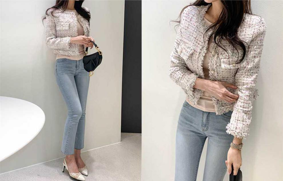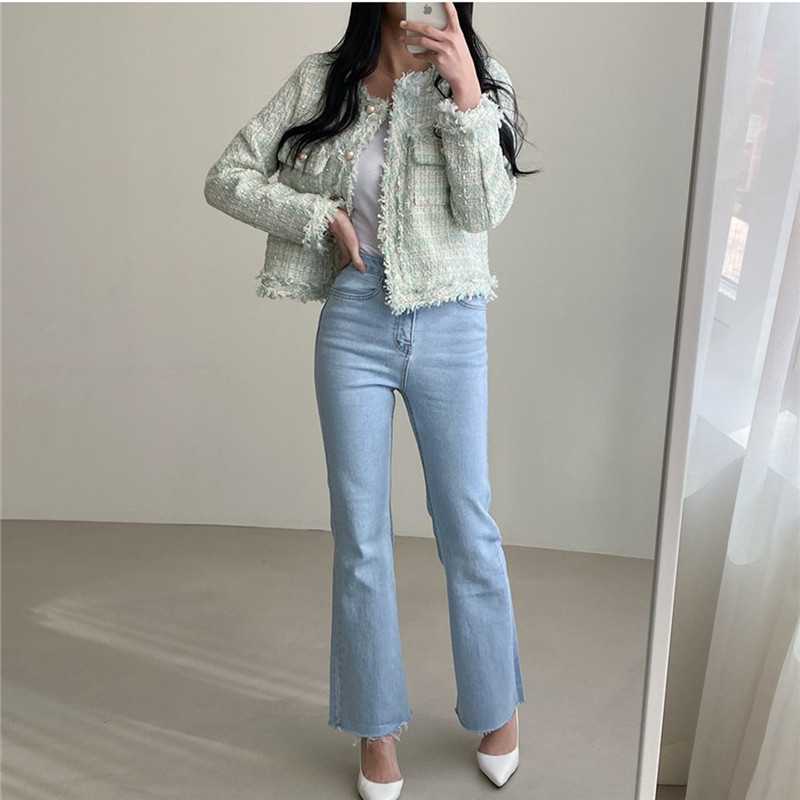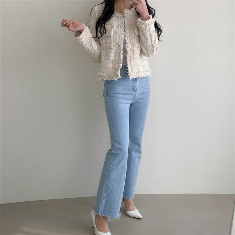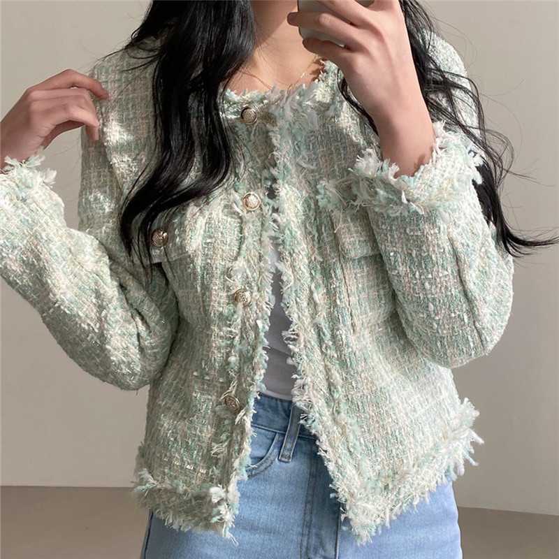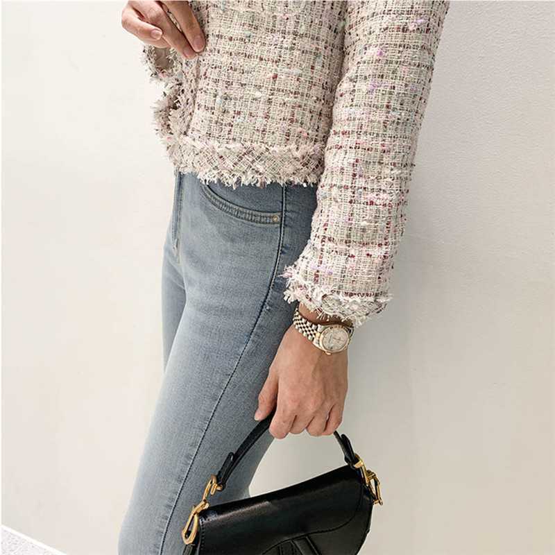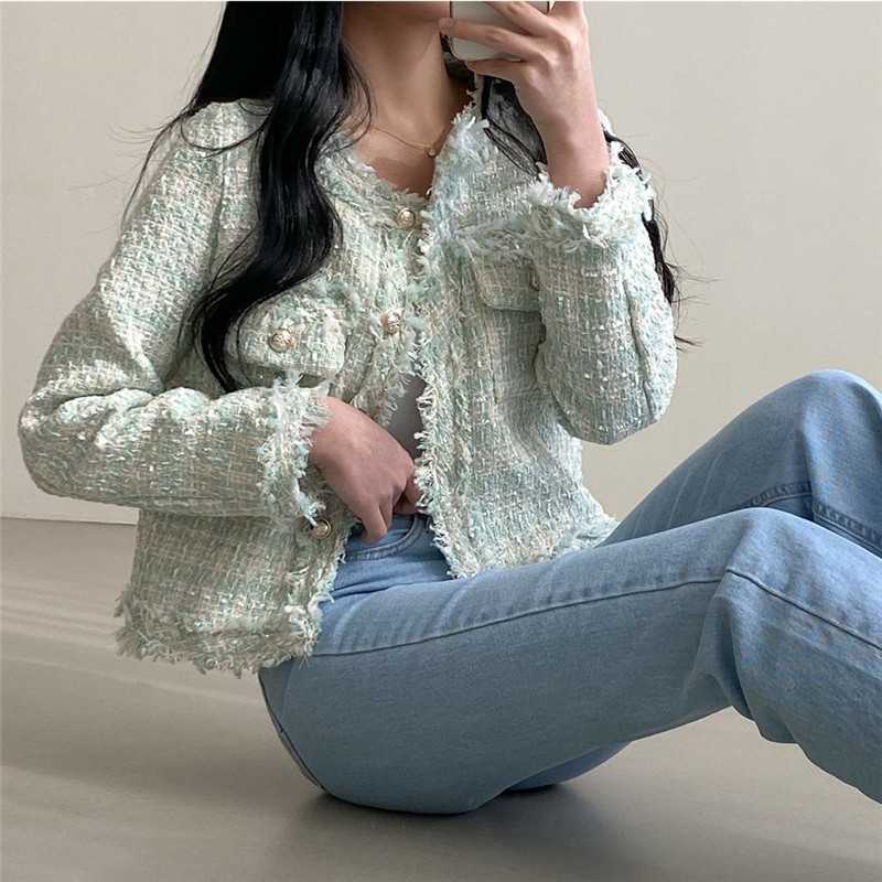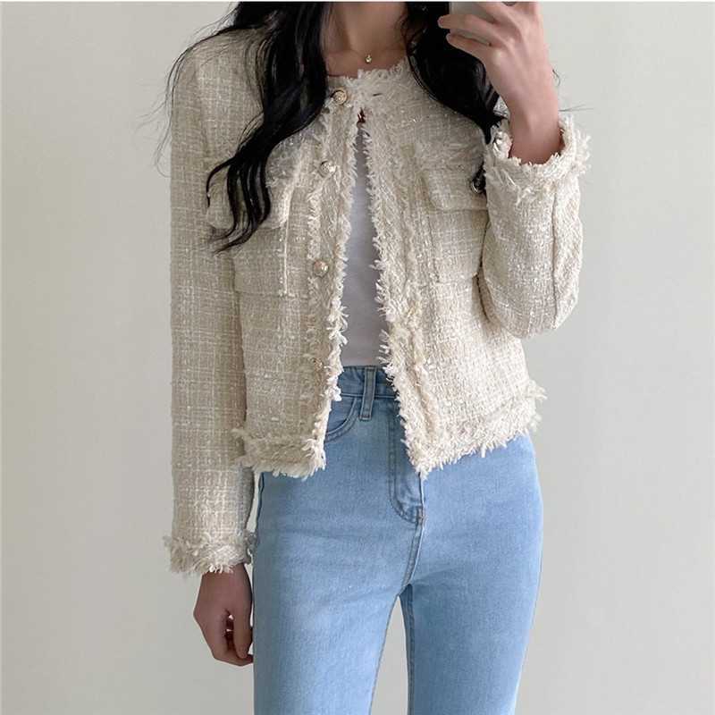 Пальто-кардиган в западном стиле с потертыми краями в стиле Chanel с круглым вырезом, женский весенний новый маленький твидовый короткий топ в Корейском стиле