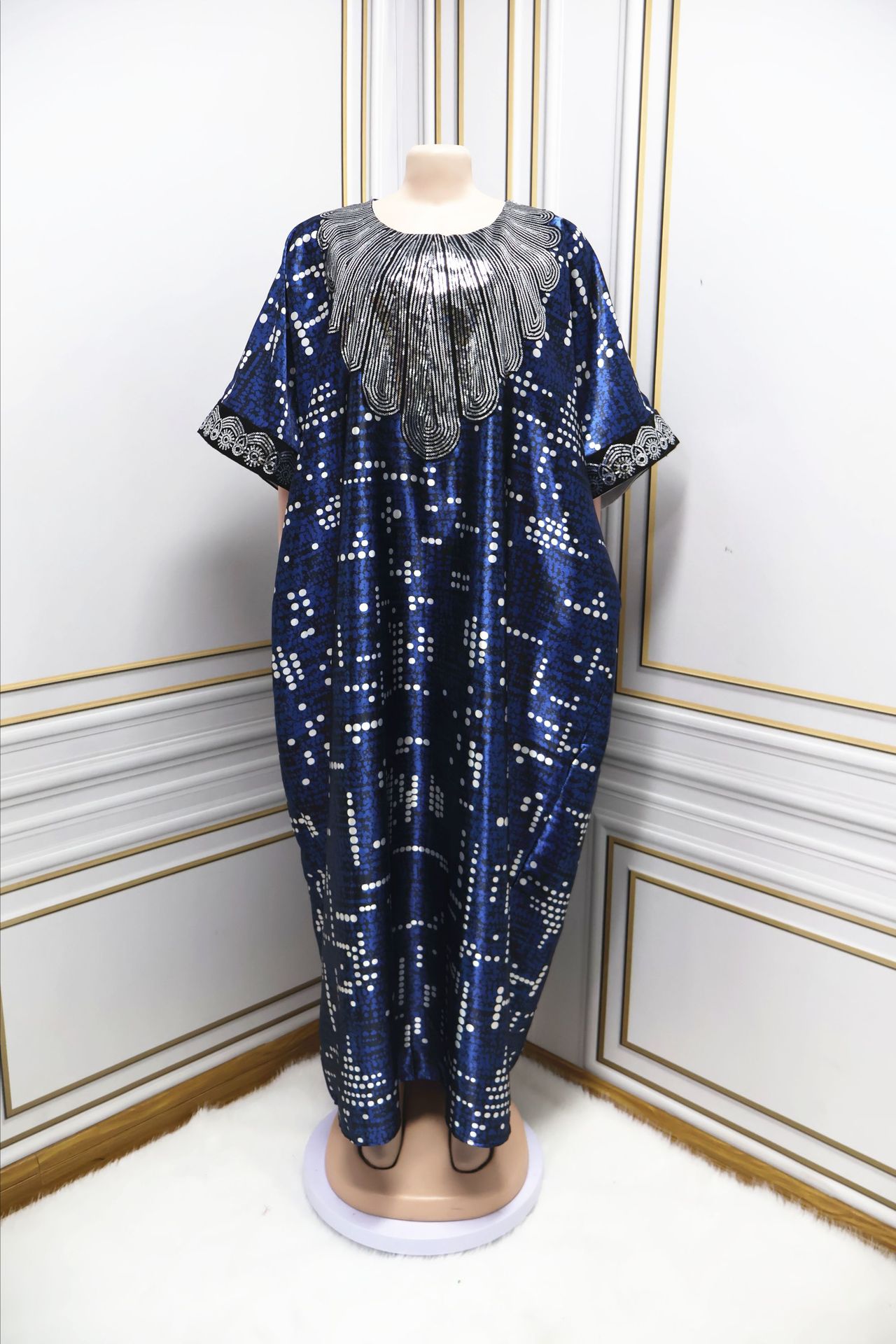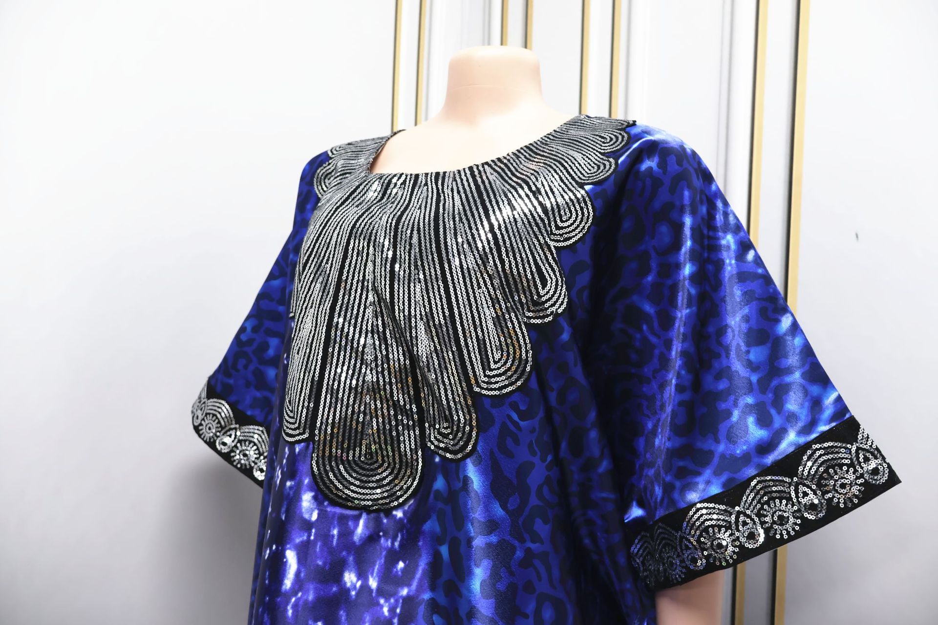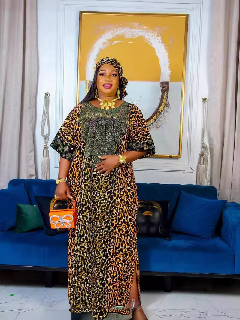 Tiktok2024 Африканский расшитый блестками Леопардовый принт свободный халат с платком плюс размер халат платье для женщин