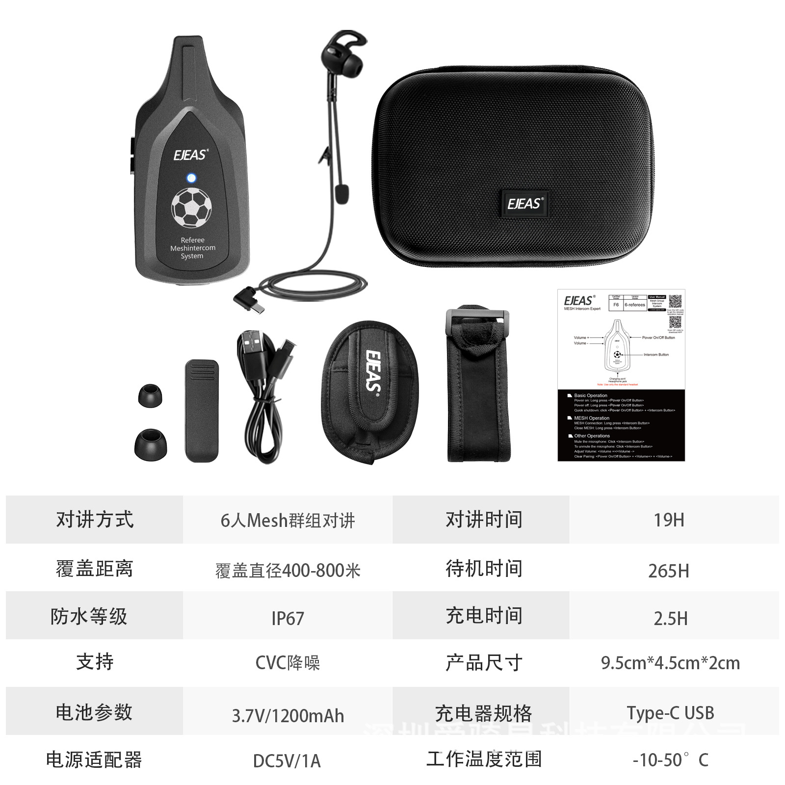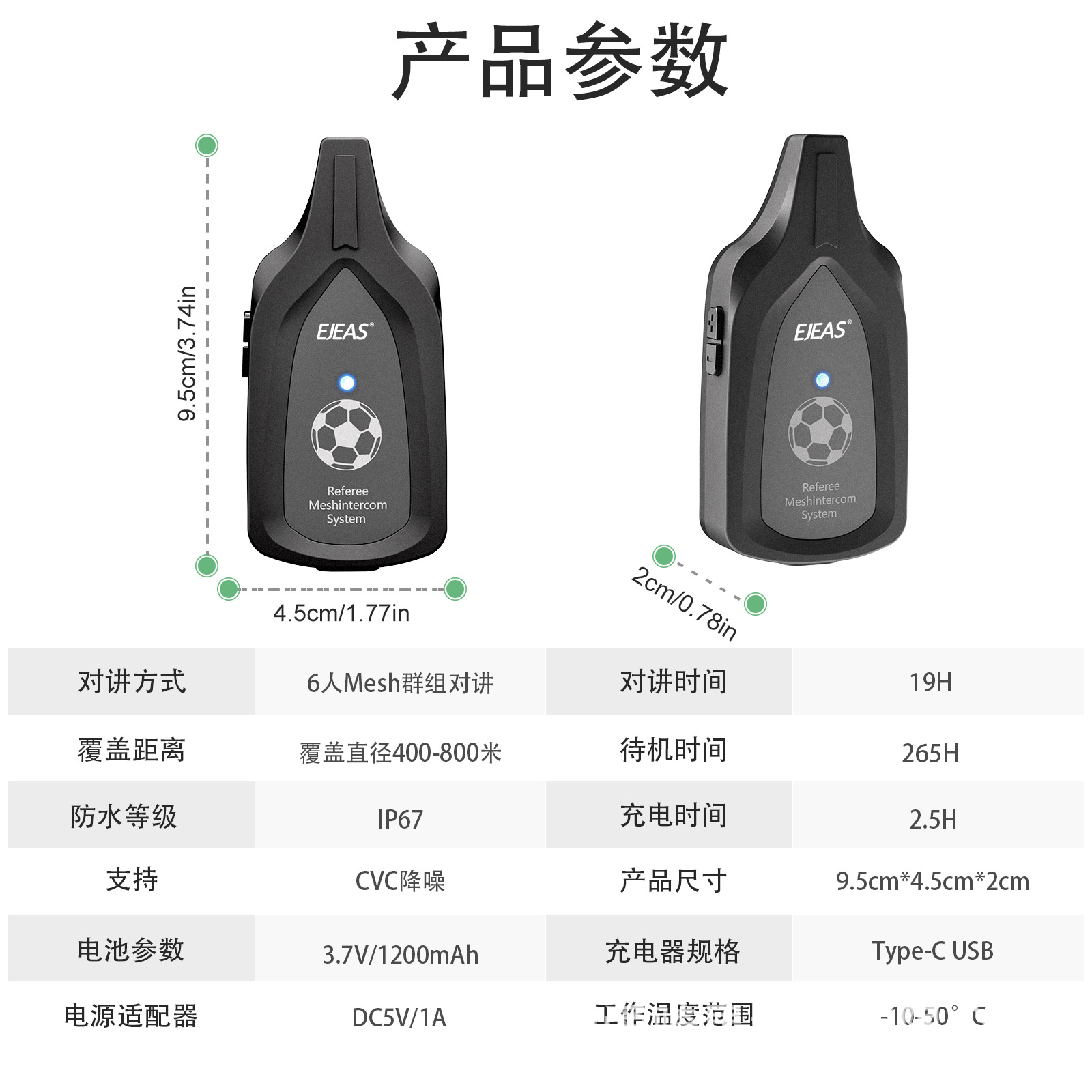 Прямые продажи от завода EJEAS: профессиональное оборудование для футбольных судей F6 с функцией полного дуплексного связи, поддерживает групповую связь до 6 человек.