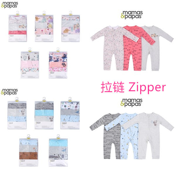 mamas&papas婴装春秋夏装3件包长平脚拉链,男女宝宝随机颜色定制下单 可以定制码数