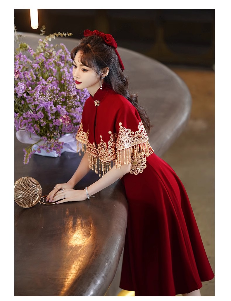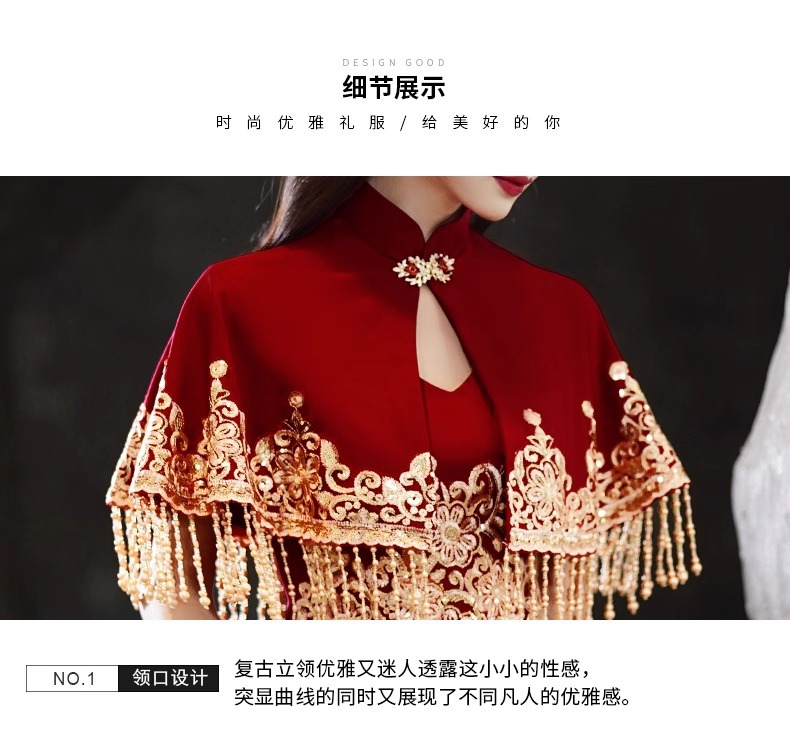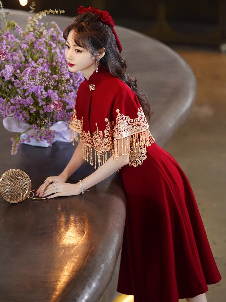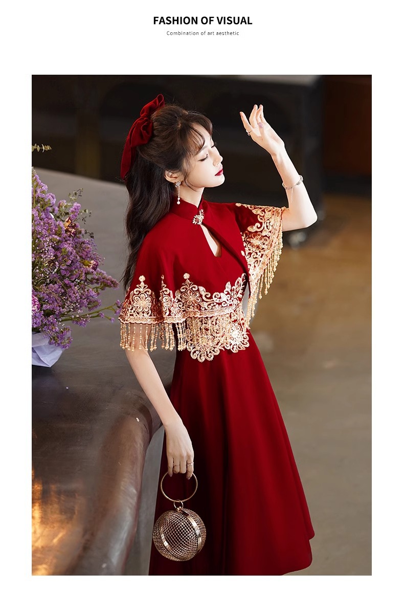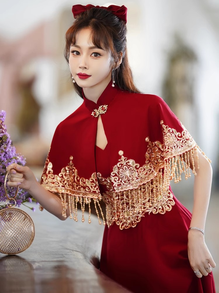 Китайское тостовое платье невесты винно-красный Чонсам свадебное платье спиной к двери Женская Маленькая шаль можно носить и улучшать в обычное время