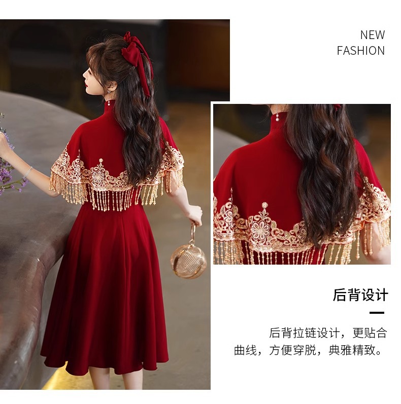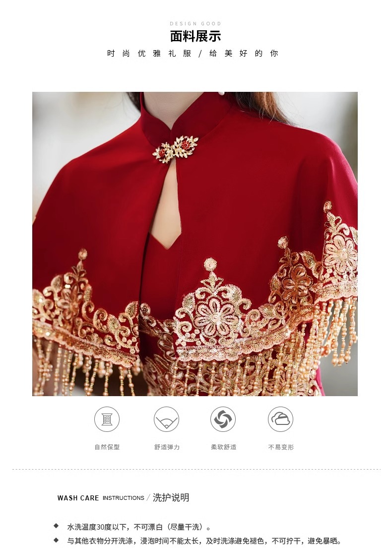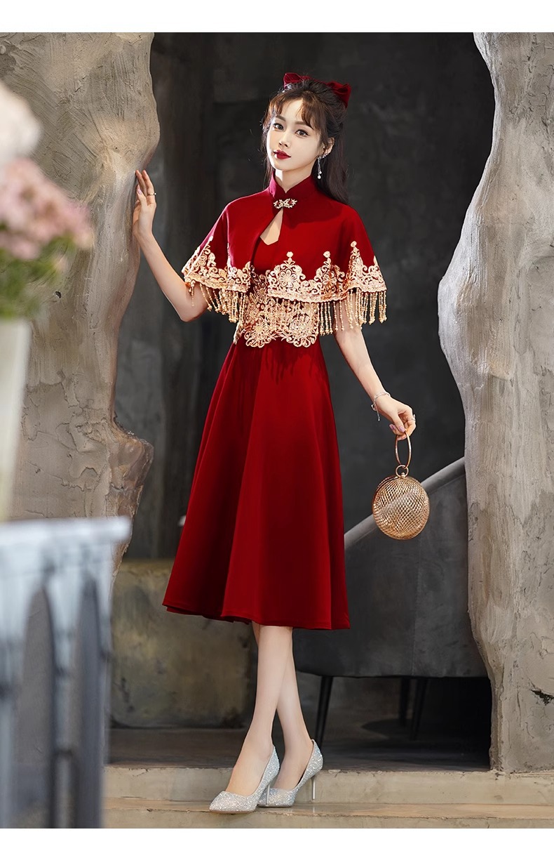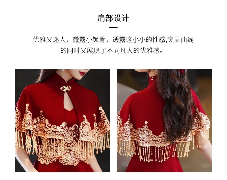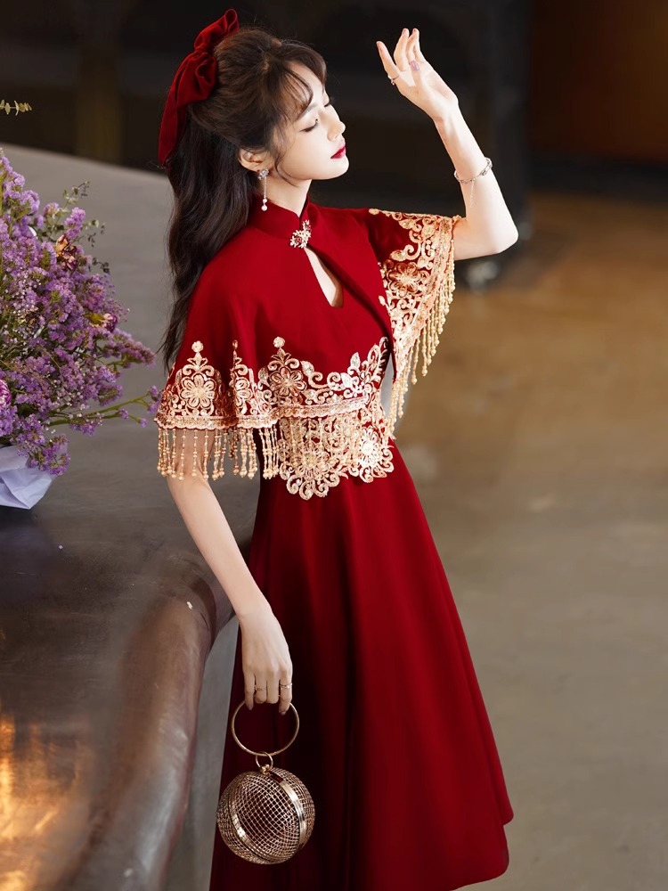 Китайское тостовое платье невесты винно-красный Чонсам свадебное платье спиной к двери Женская Маленькая шаль можно носить и улучшать в обычное время