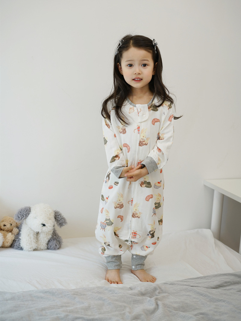 Весна и лето Четырехслойный спальный мешок из бамбукового хлопка с разрезом на штанинах, детская осенне-зимняя строчка, спальный мешок с длинными рукавами и разрезом на штанинах, детское одеяло с защитой от ударов