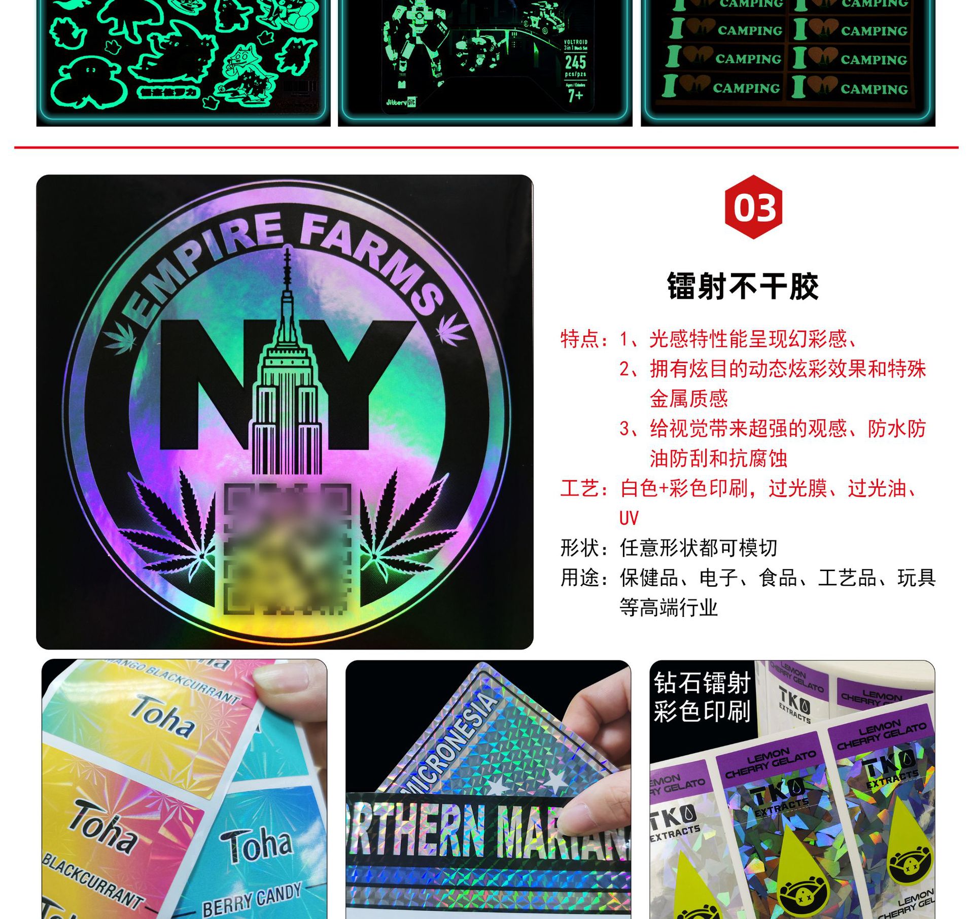 Светящаяся наклейка, самоклеящаяся наклейка, индивидуальная цветная печать, прозрачная самоклеящаяся водонепроницаемая флуоресцентная светящаяся наклейка на заказ