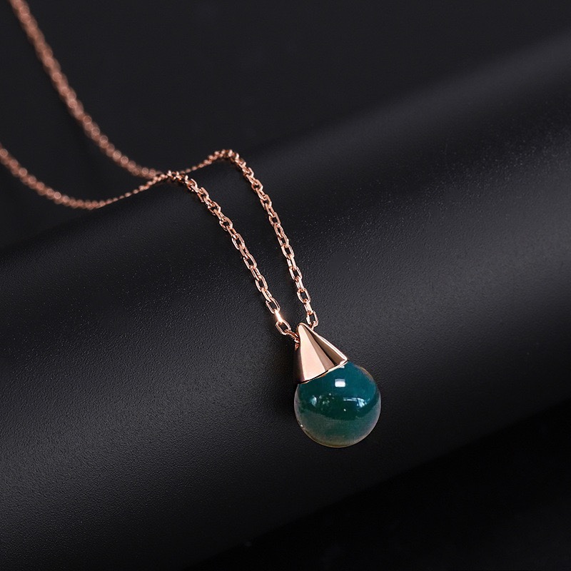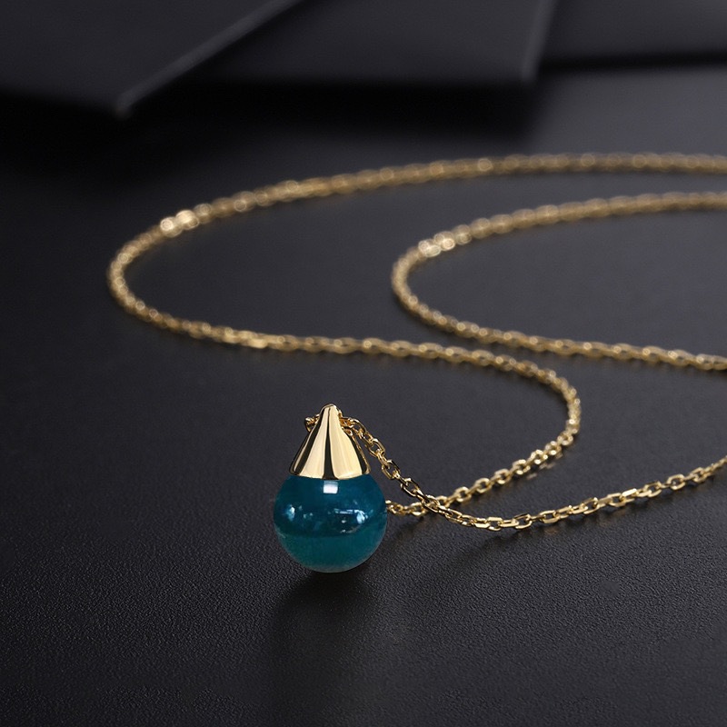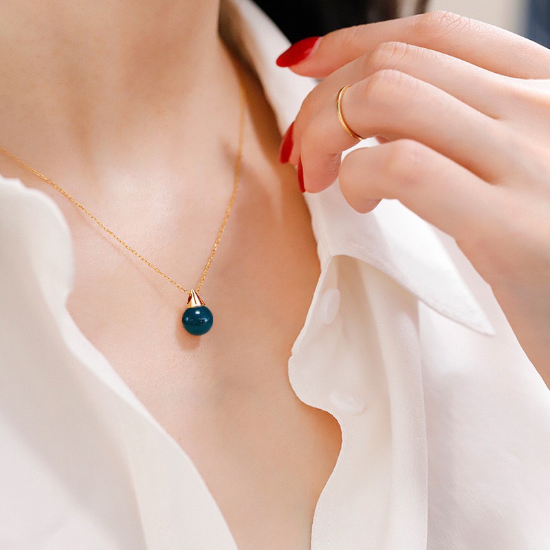 Серебряное колье S925 с мексиканским синим янтарем 8 мм, подвеска из янтаря, розовое золото, изысканный дизайн в виде маленькой лампочки, новая модель 2026 года