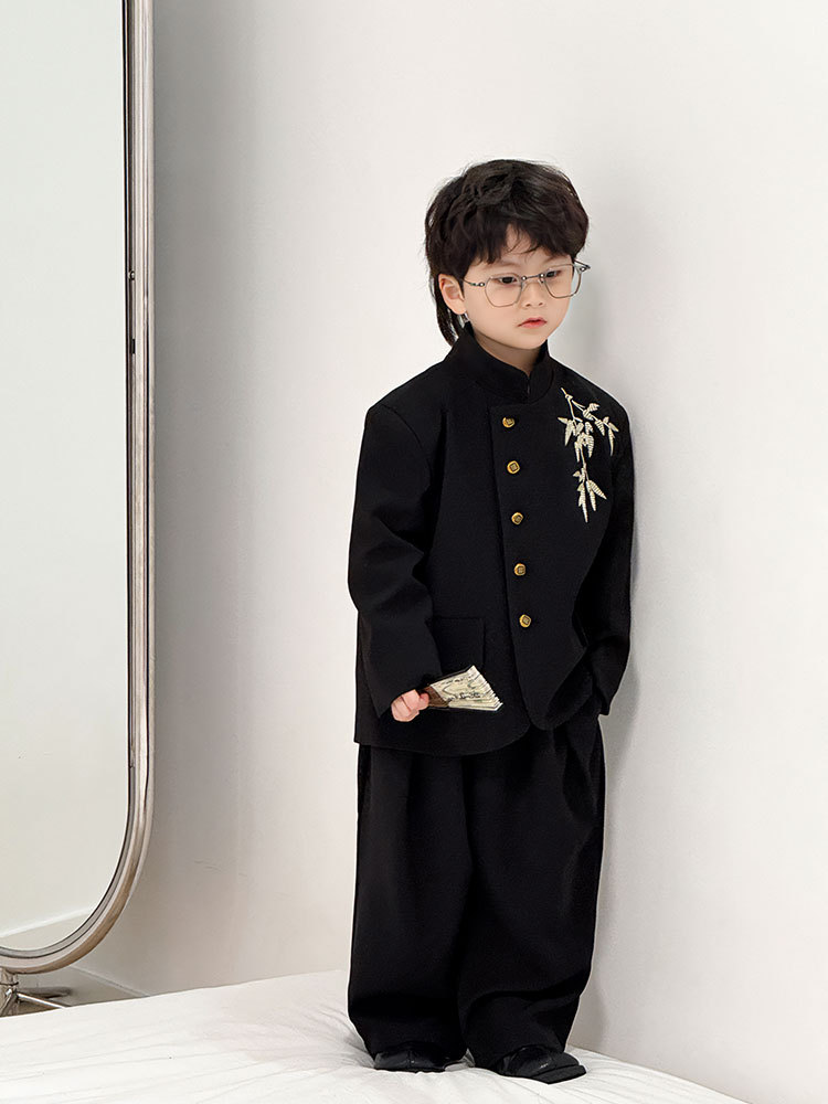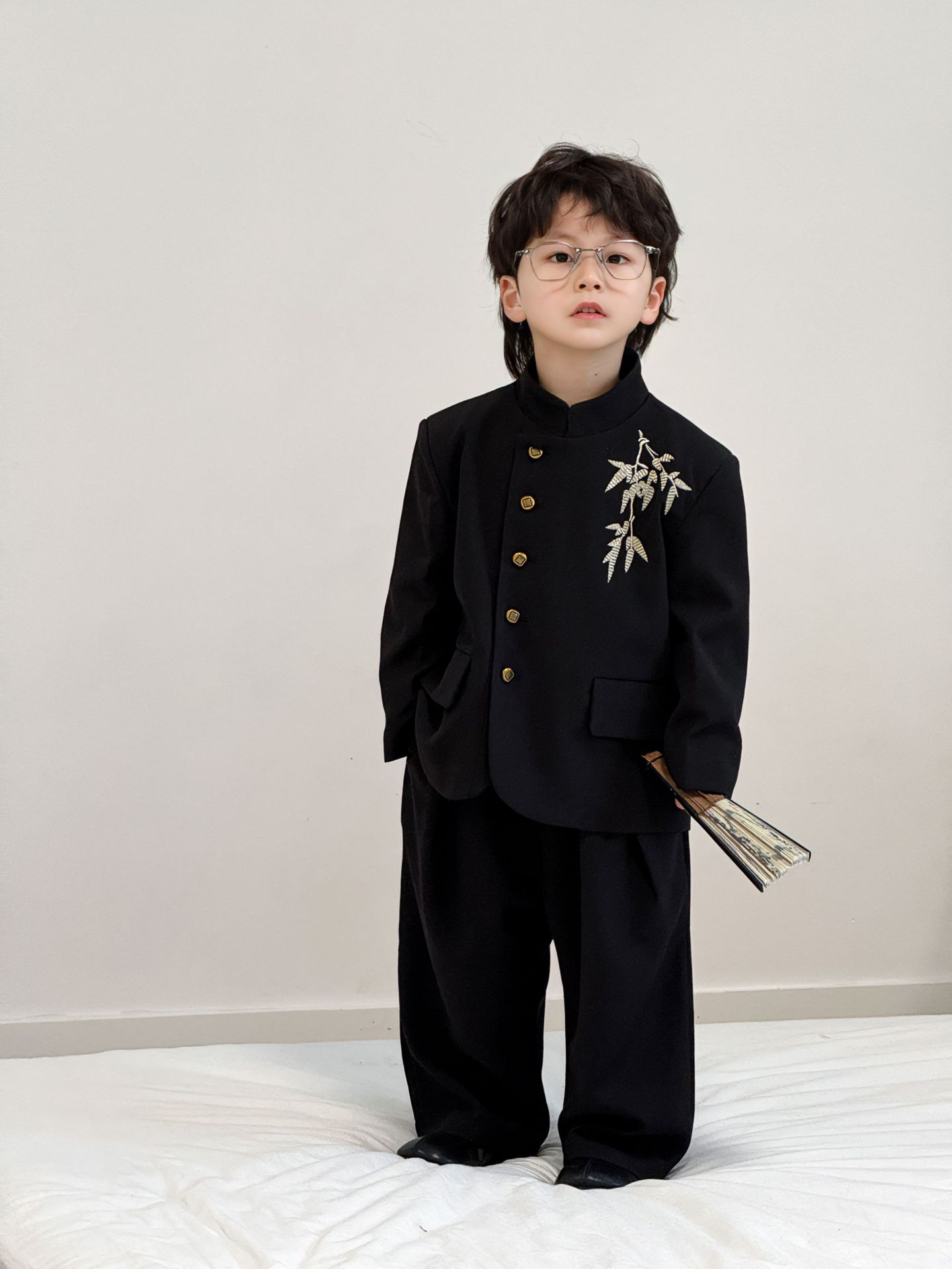 Костюм для мальчиков, новый китайский костюм в стиле Тан, новинка весны и осени 2025 года, ретро-куртка с воротником Чжуншань, повседневный китайский стиль, оптовая продажа в комплекте.
