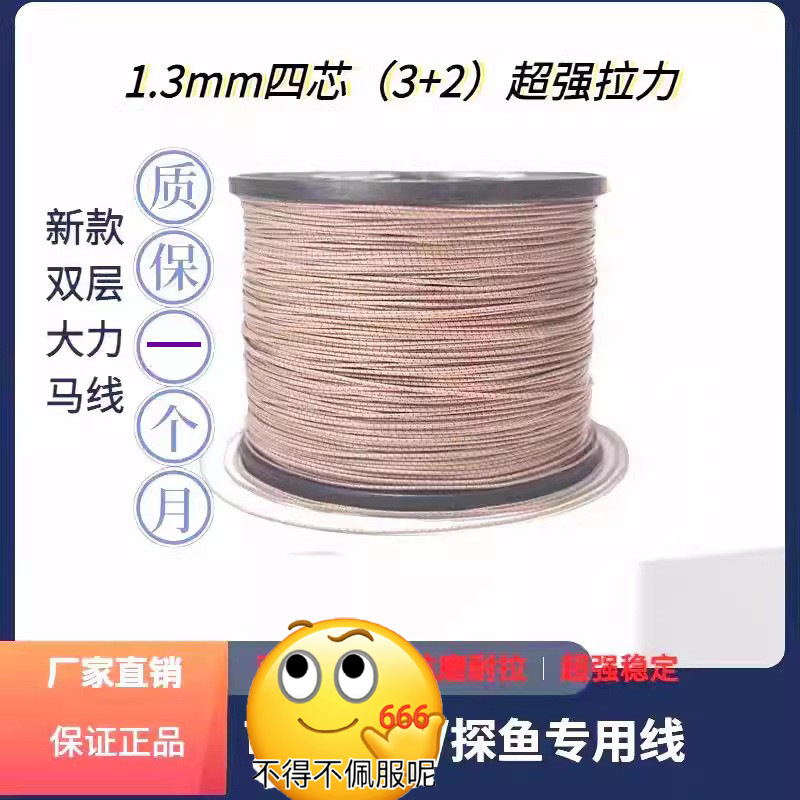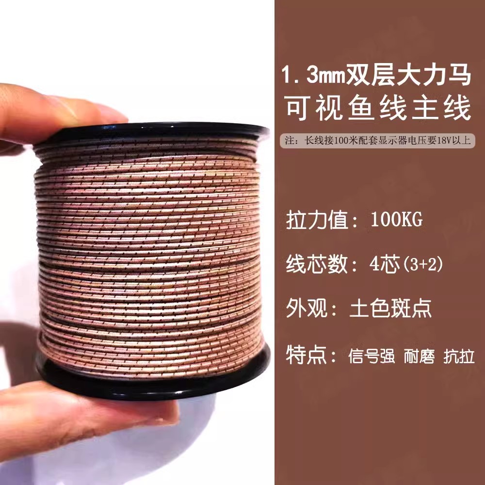 Визуальная леска для рыбалки 1.3мм3+2, видимая леска для эхолота 1.1мм9-жильная 11-жильная двухслойная Dyneema, основная леска для видео, землисто-пятнистая.