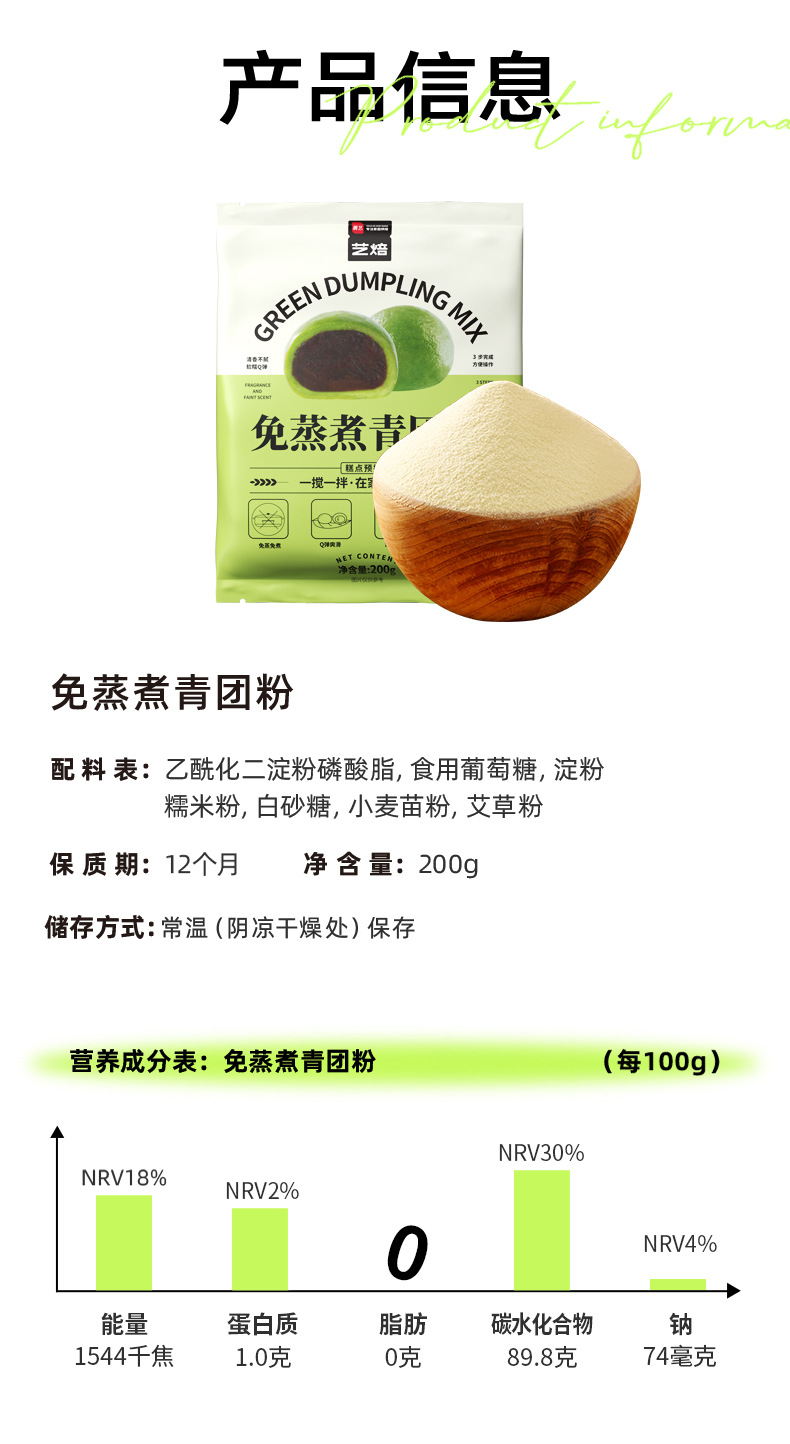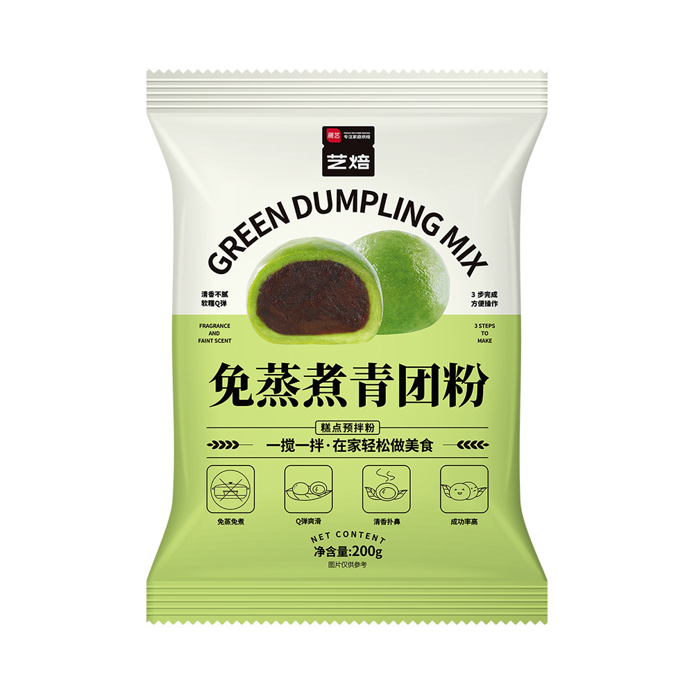 Зеленый пудинг для пельменей без варки 200г/уп.; Зеленый порошок теста без сахарозы, не требующий варки, 200 г/упаковка; В связи с сезонным характером порошка Цинтуань, все продажи являются окончательными и не подлежат возврату после отправки.