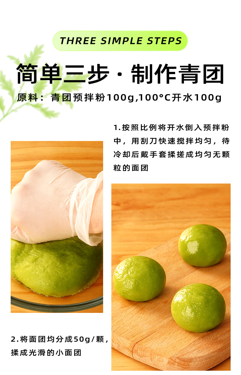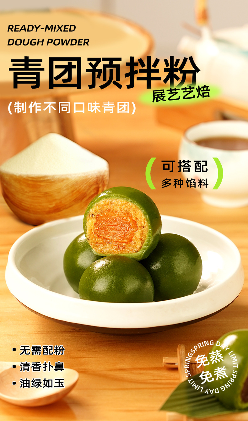 Предварительно смешанная пудра Zhanyi Qingtuan, 200 г, специальная без паровой обработки, листья полыни, яичный желток, мясная нить, фрукты Цинмин, порошок зеленой травы, клейкий рисовый кекс, сделай сам