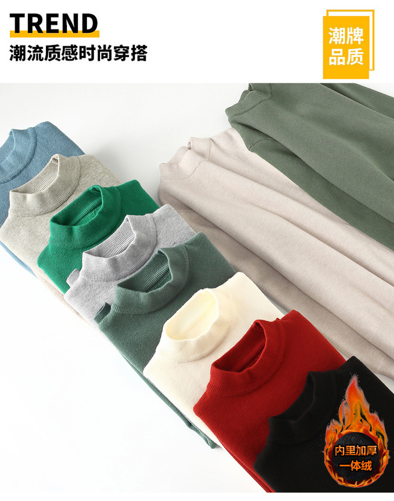 Внешняя торговля, Мужской Цельный бархатный утолщенный пуловер с длинными рукавами и круглым вырезом, половинчатая водолазка, с флисовой подкладкой, модный мужской теплый свитер
