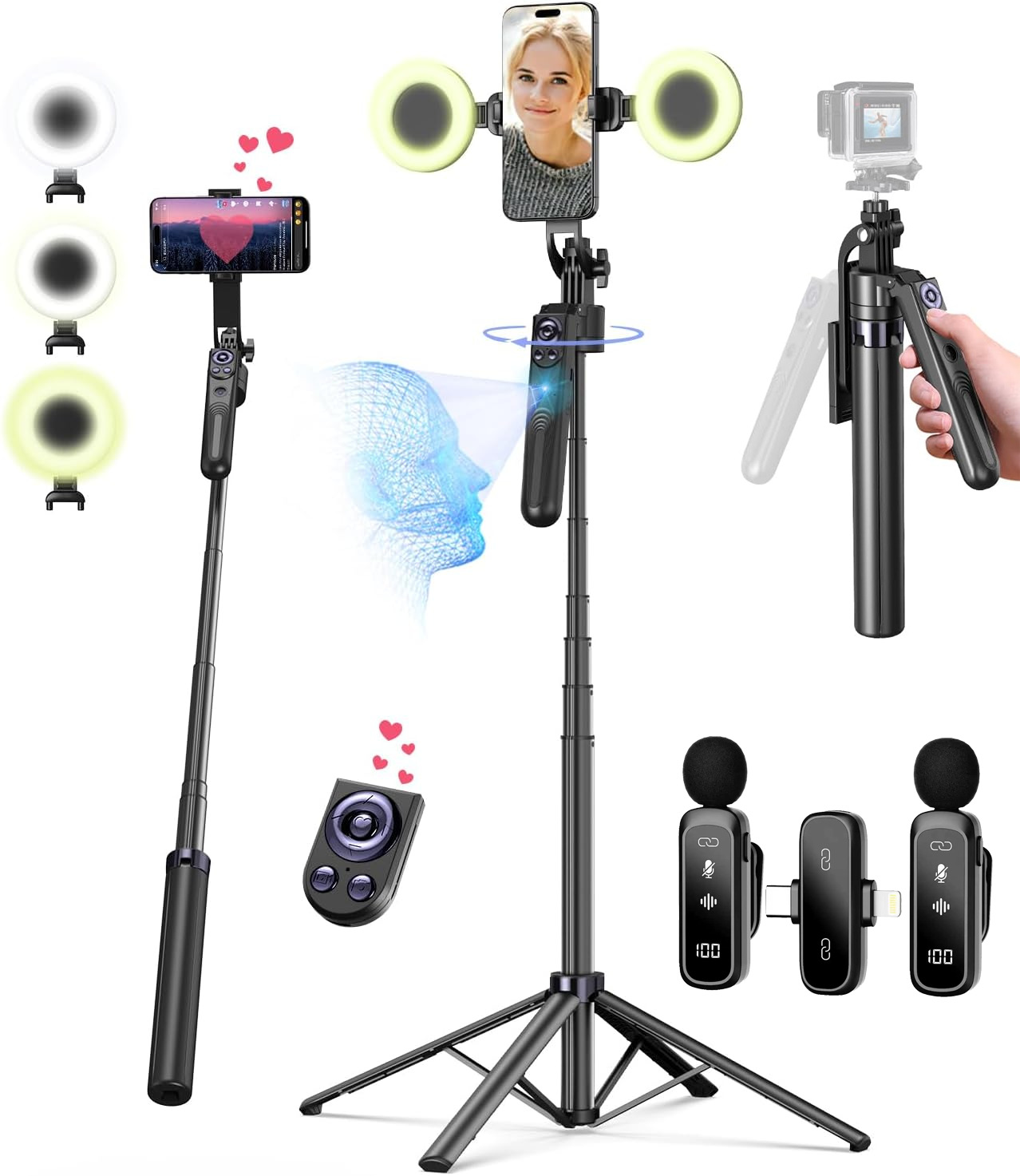 Интеллектуальное отслеживание и распознавание лиц с углом обзора 360° ° Стабилизатор для мобильного телефона, инструмент для селфи и прямых трансляций в TikTok, с панорамным отслеживанием и защитой от тряски.