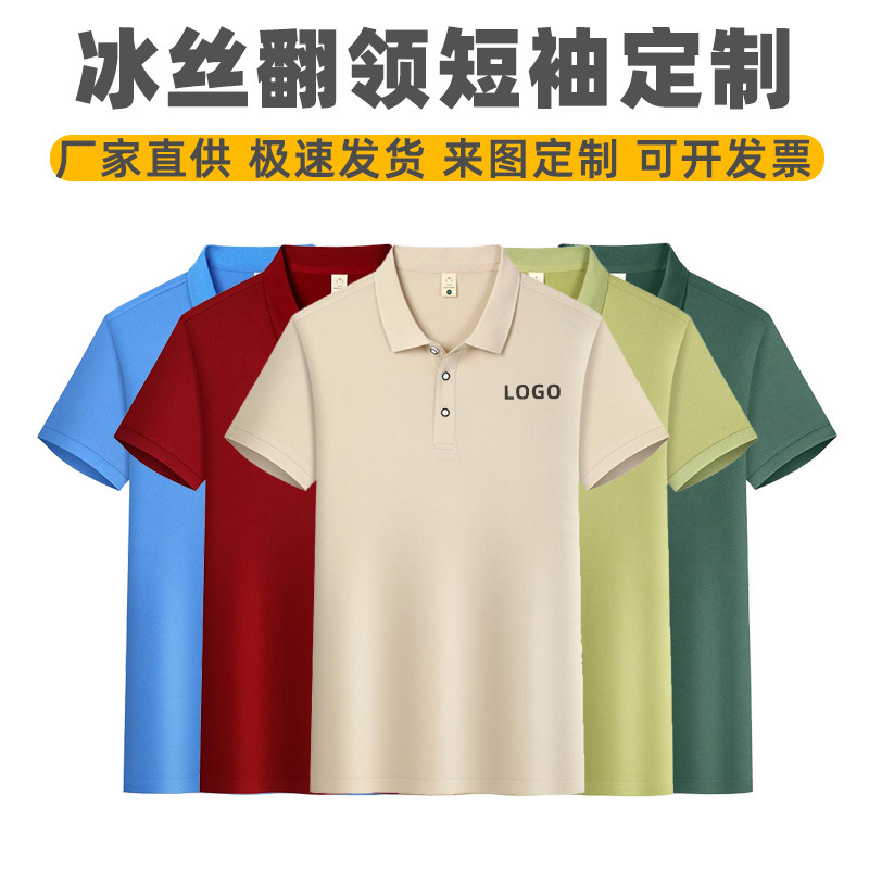 Летняя футболка-поло из ледяного шелка с коротким рукавом, с индивидуальным логотипом, рабочая одежда с отложным воротником, униформа для групповой работы, футболка, рекламная футболка с напечатанным текстом, для самостоятельного дизайна
