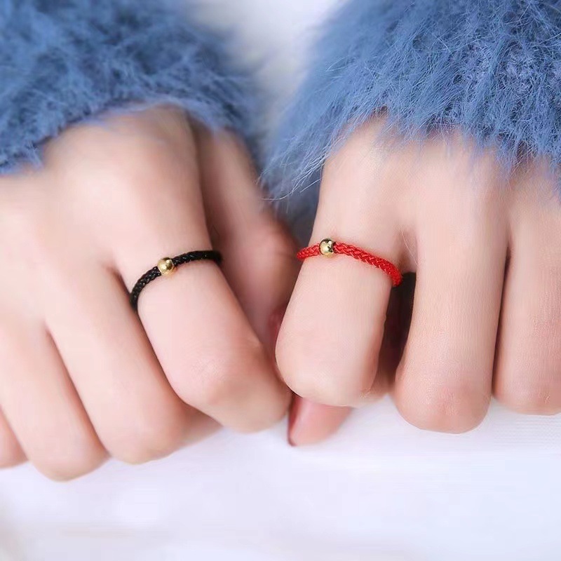 Маленькое кольцо с черной нитью и золотыми бусинами в стиле TikTok для женщин, пары или лучшего друга, плетеное кольцо с красной нитью Little Red Book.