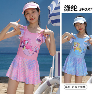 Купальник для детей, девочек, детей маленького и среднего размера, милый и модный детский цельный купальник принцессы для детей 6-13 лет в стиле горячего весеннего курорта
