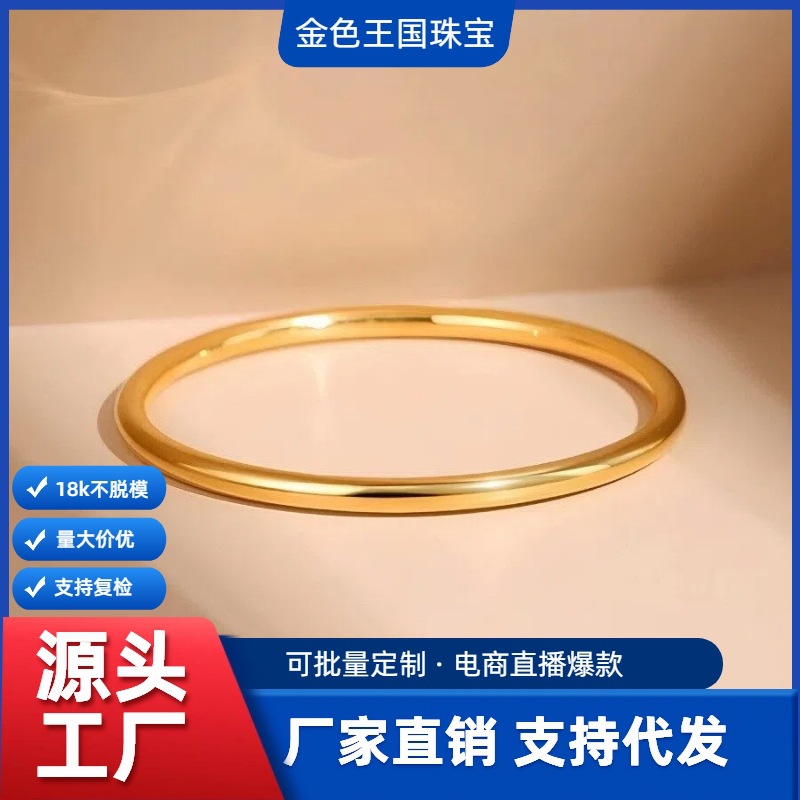 Золотой браслет из золота 18к, без рисунка, цвет золота AU750, цельный, неформовочный, для многослойного ношения, натуральный стиль, популярный женский браслет, оптом, форма ракушки