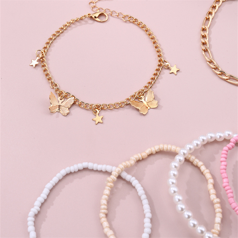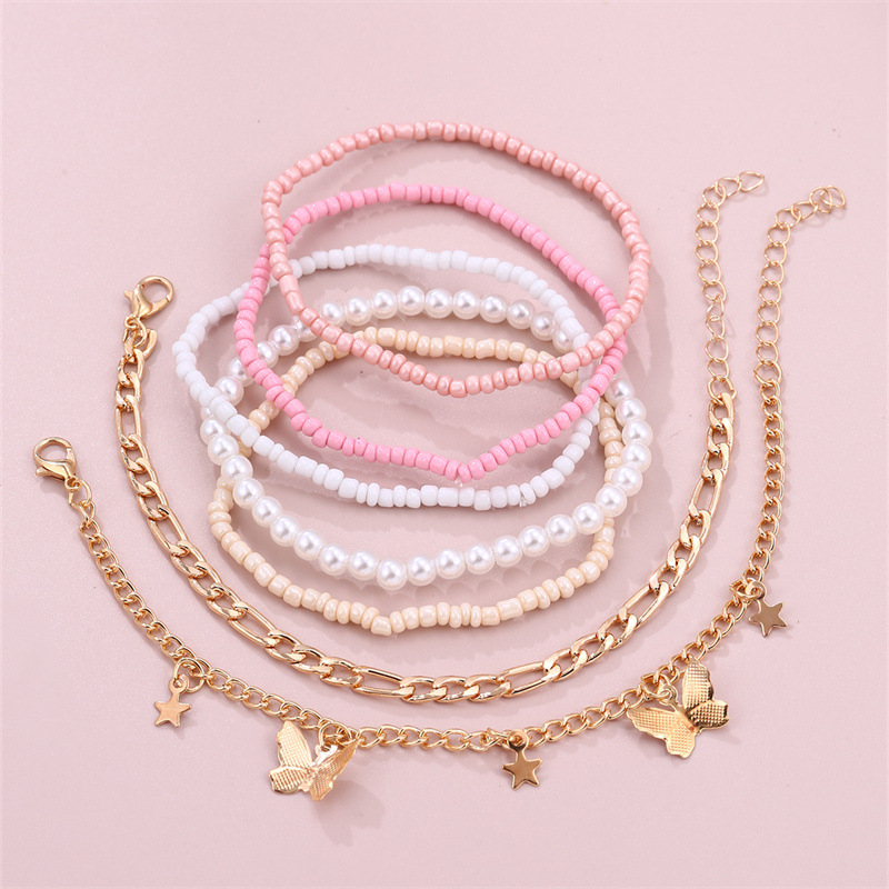 Трансграничное новое украшение для ног дизайн ниши простые рисовые бусины ручной работы из бисера Бабочка звезда кулон детский ножной браслет