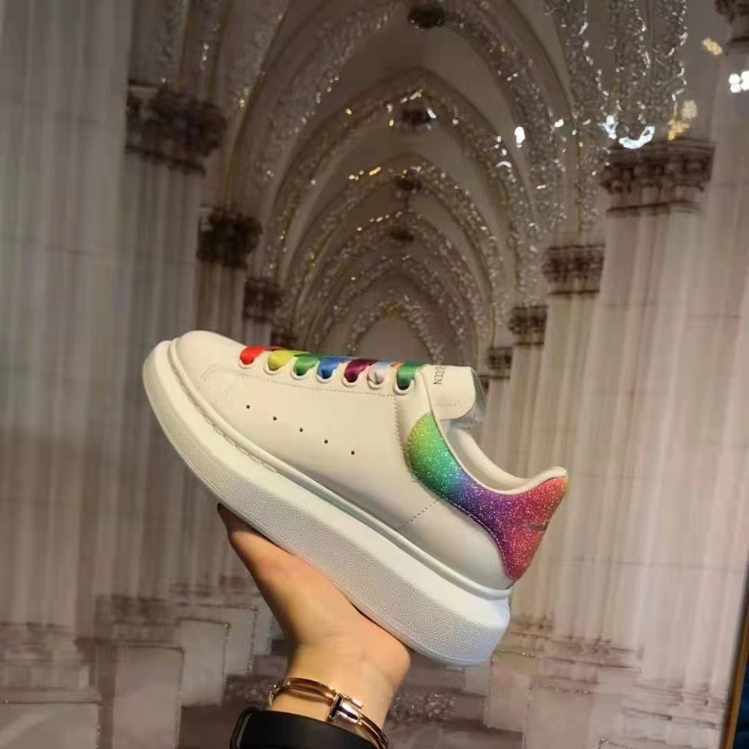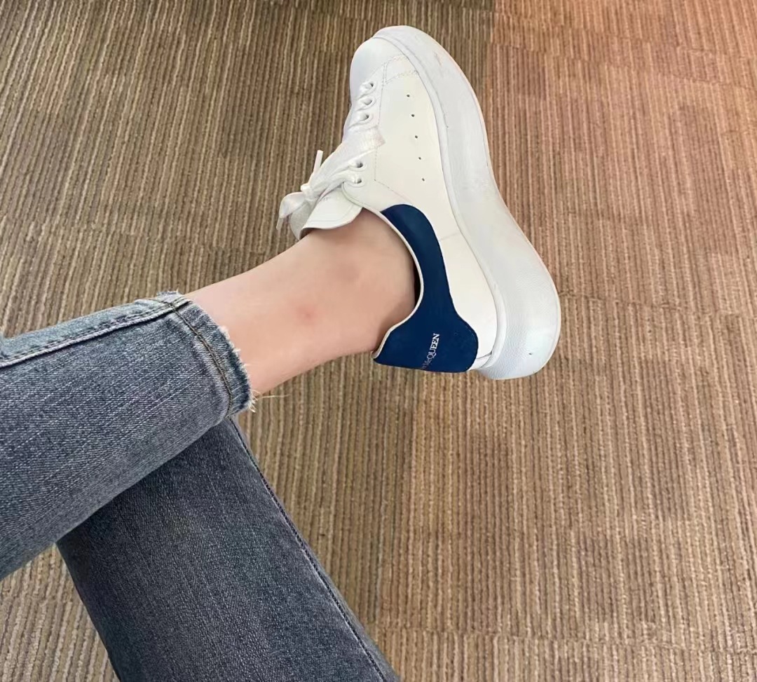 Высокая версия кожаные белые туфли McQueen, мужские туфли на платформе, увеличивающие рост, универсальные туфли на платформе, женские повседневные спортивные туфли для пар 24