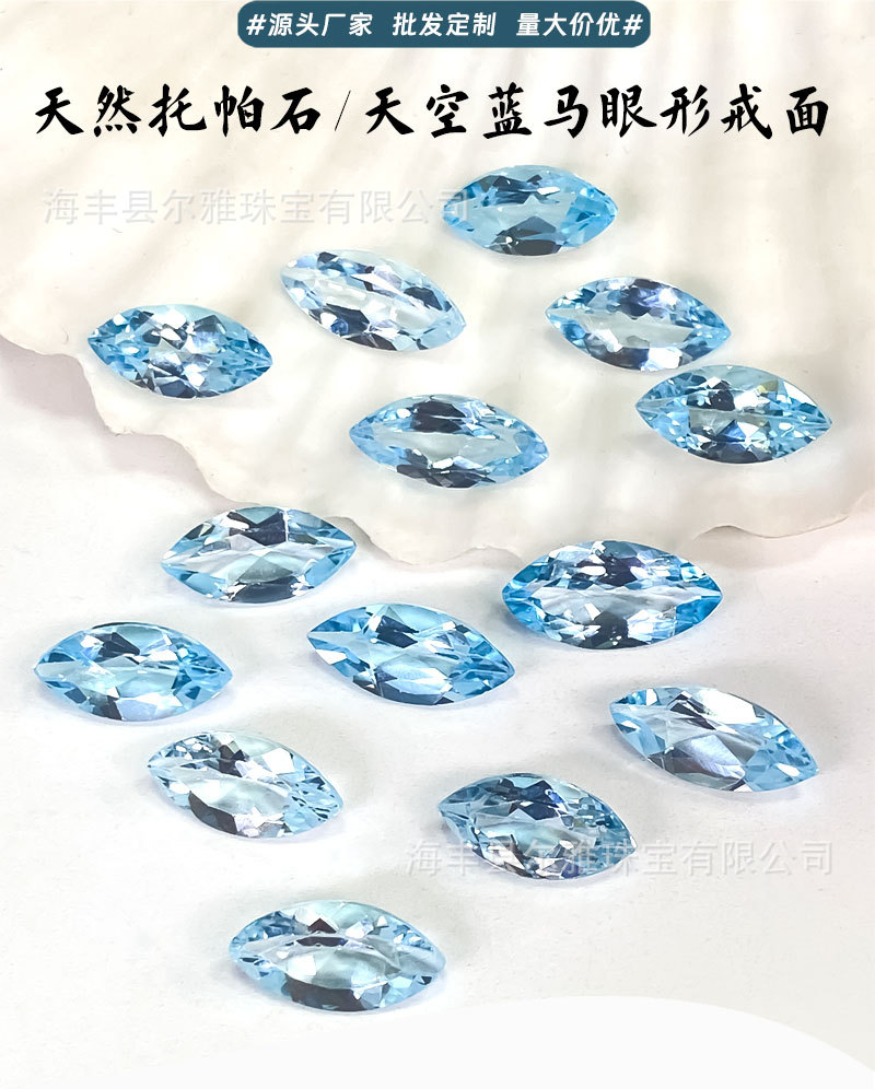 Небесно-голубой топаз, конский глаз, кольцо с голым камнем, лицо