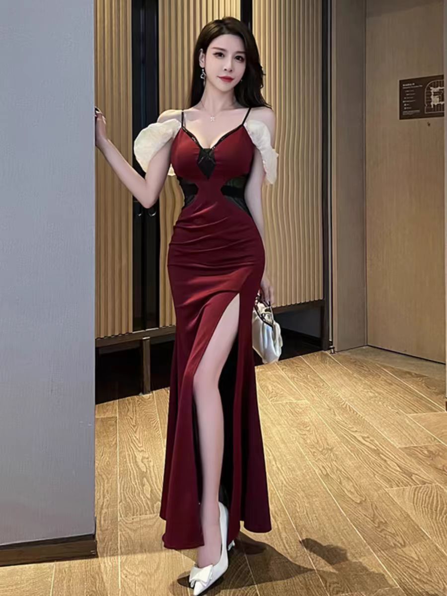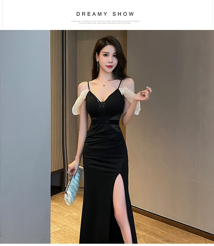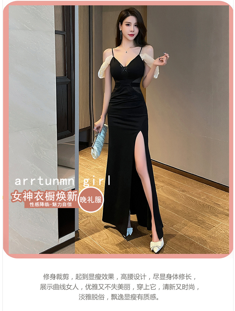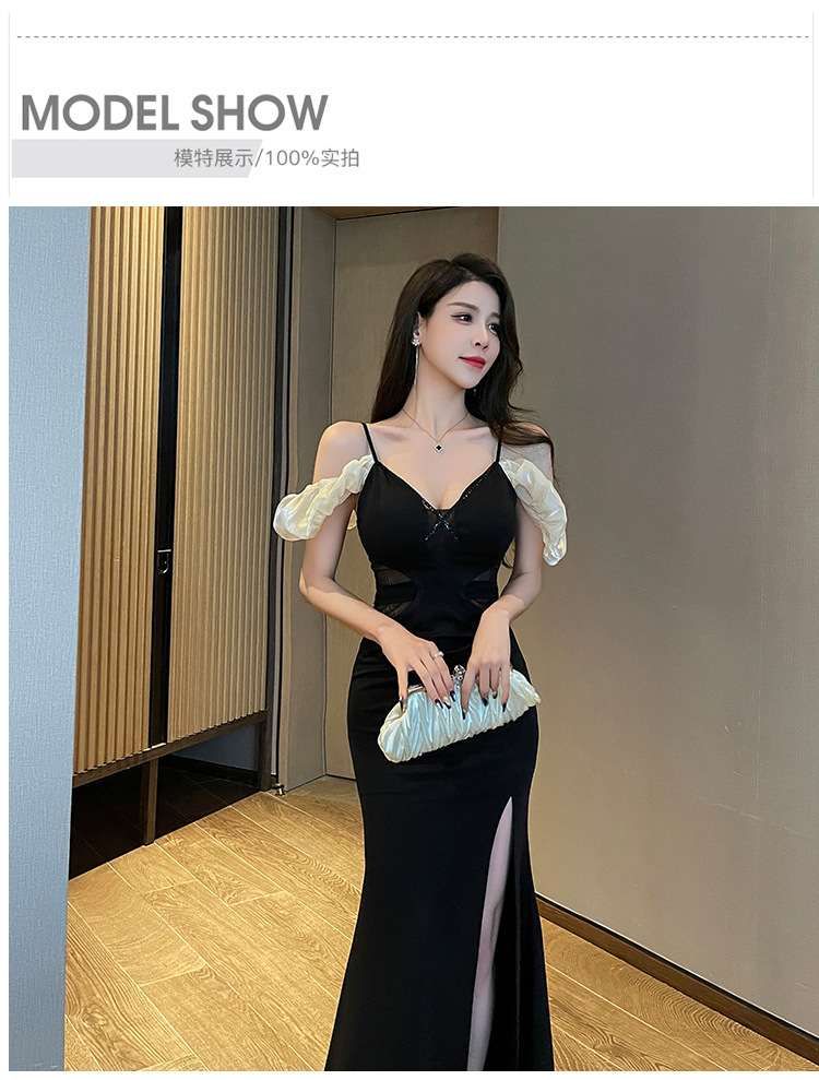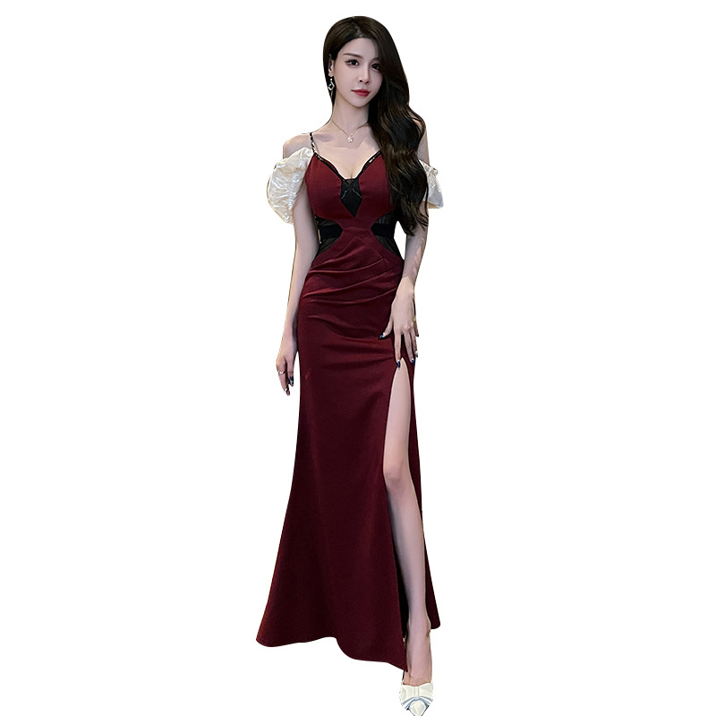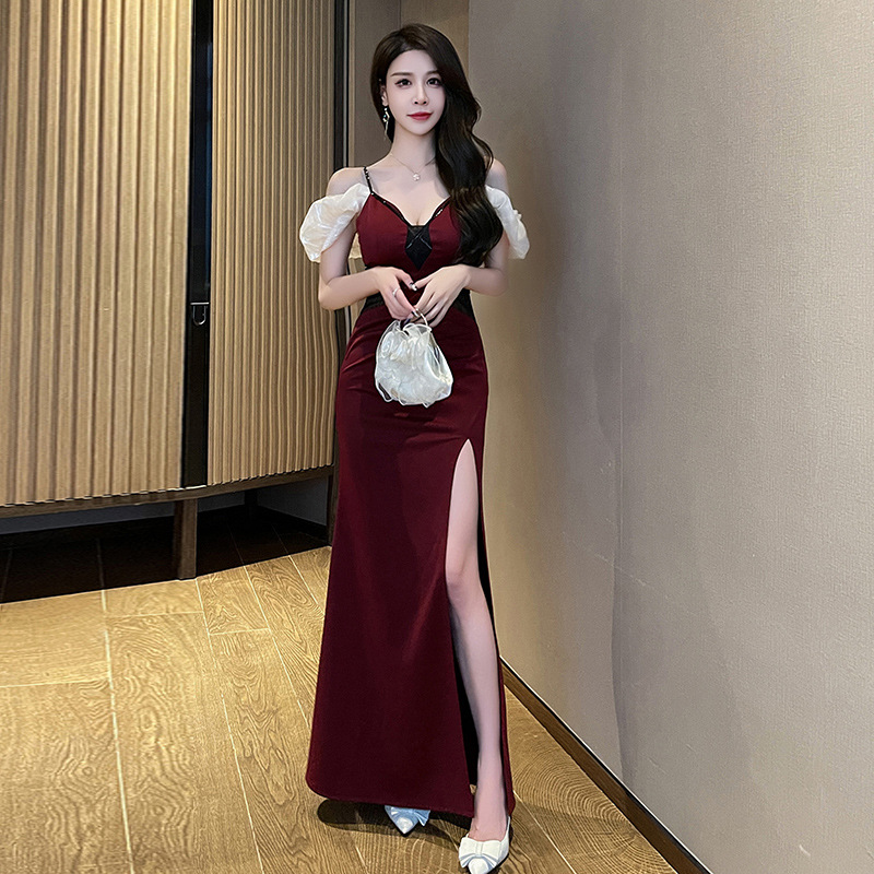 Темперамент новая светская леди с высокой вилкой вечернее платье платье на день рождения Летний ночной клуб сексуальное платье на плечо