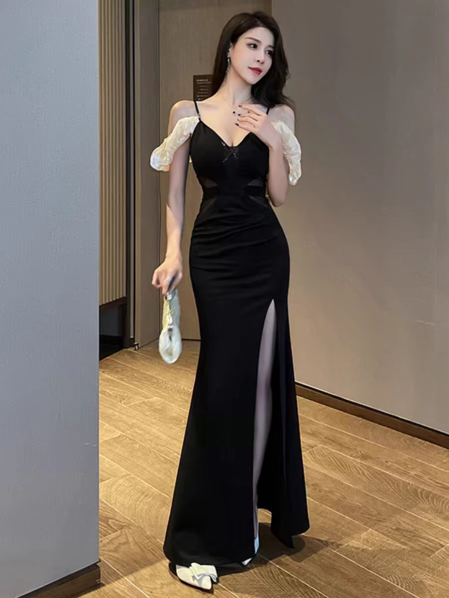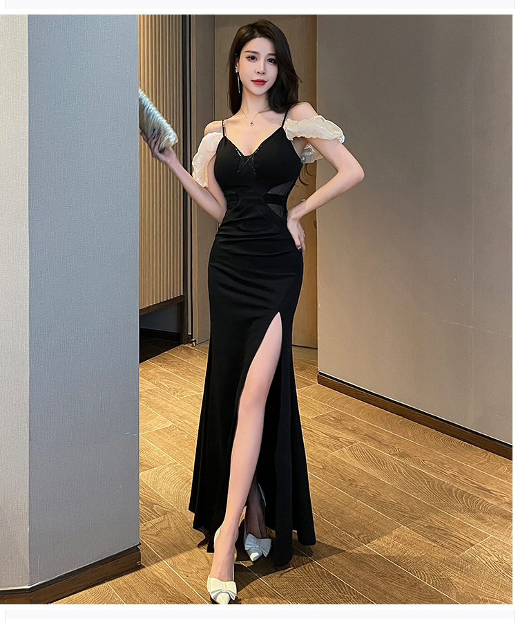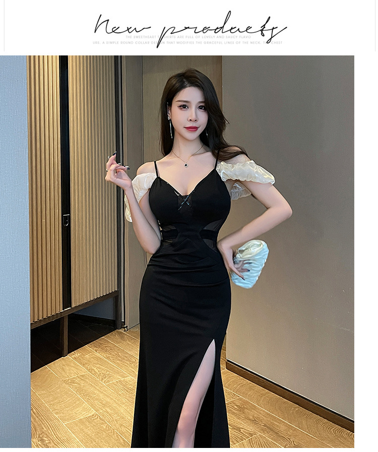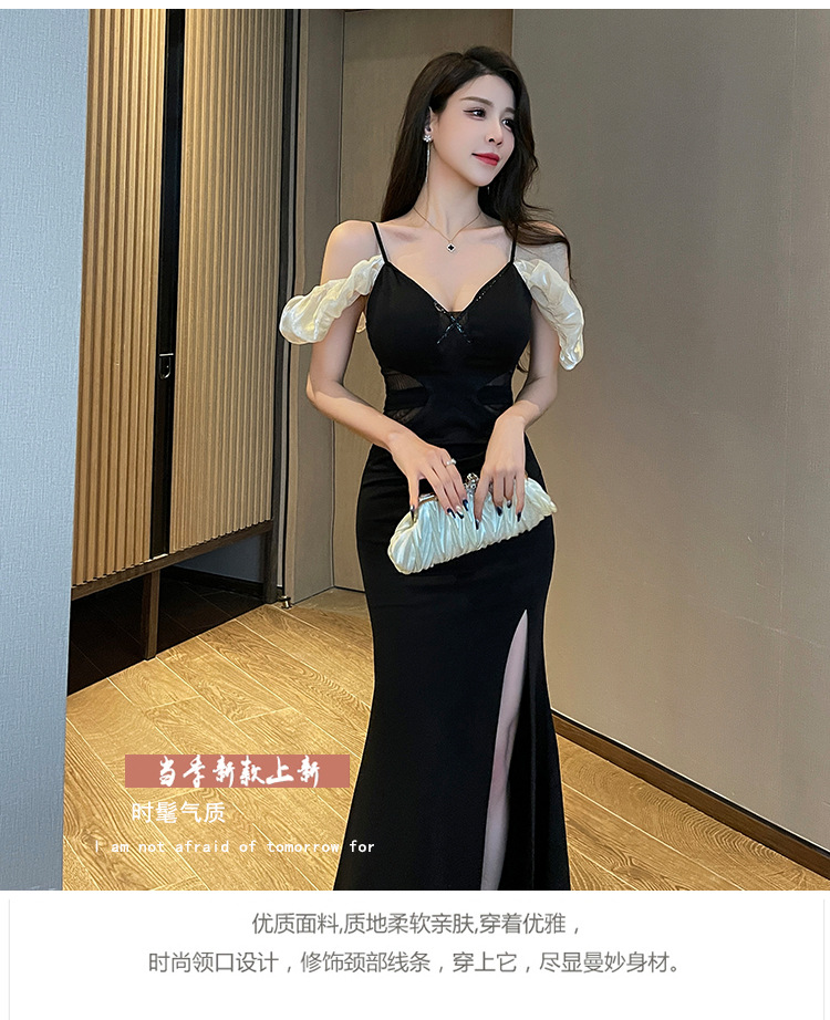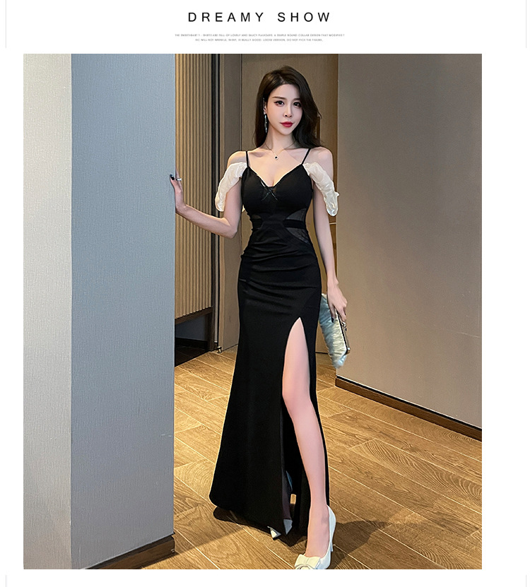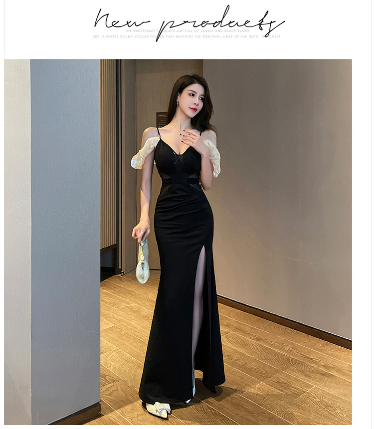 Темперамент новая светская леди с высокой вилкой вечернее платье платье на день рождения Летний ночной клуб сексуальное платье на плечо