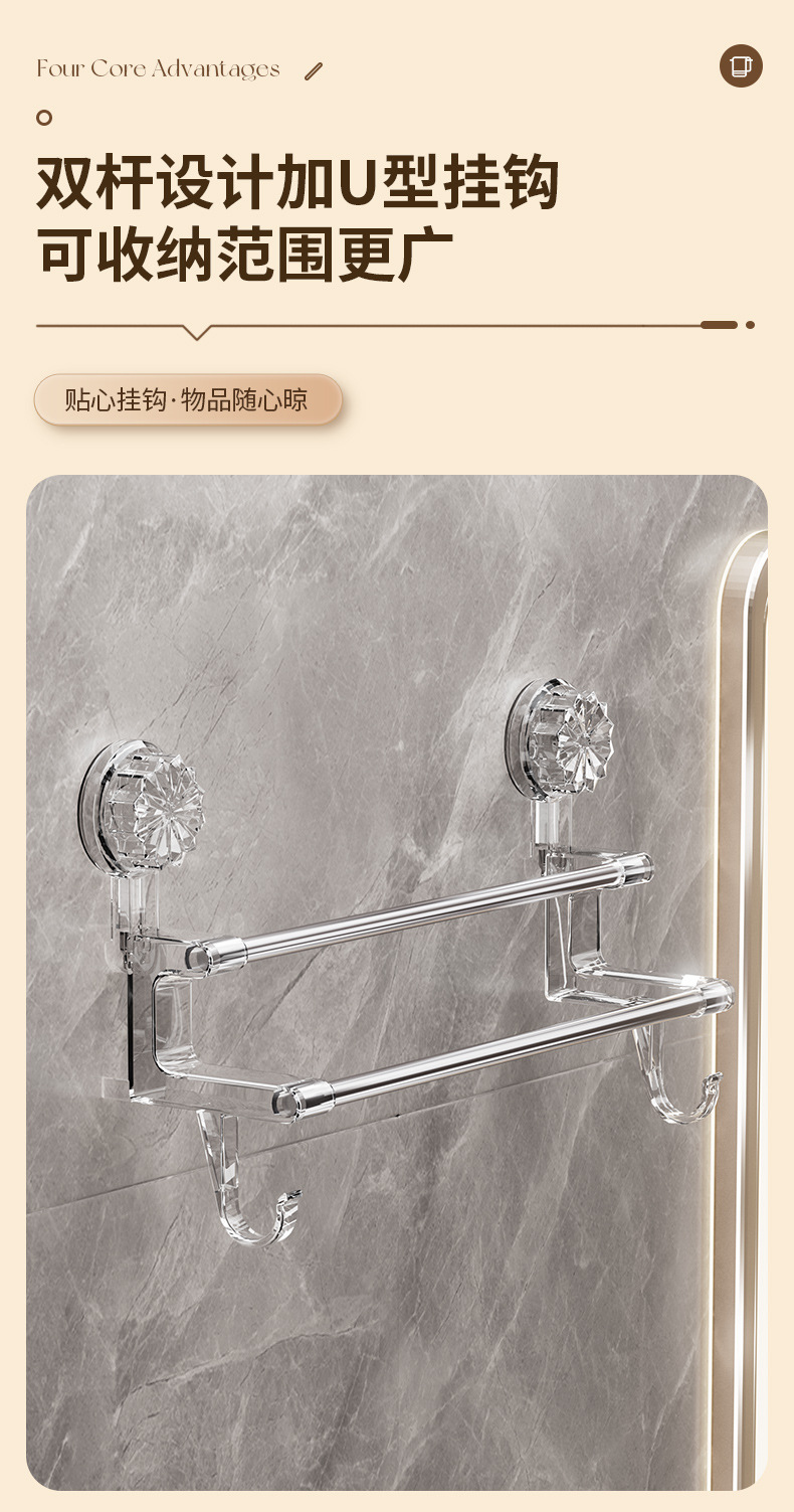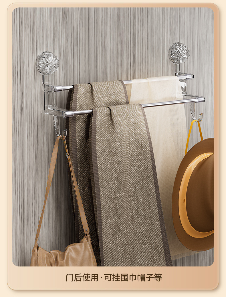 Новая вешалка для полотенец с двойным стержнем на присоске для хранения полотенец в ванной комнате с крючком, легкая Роскошная вешалка для полотенец двойного назначения