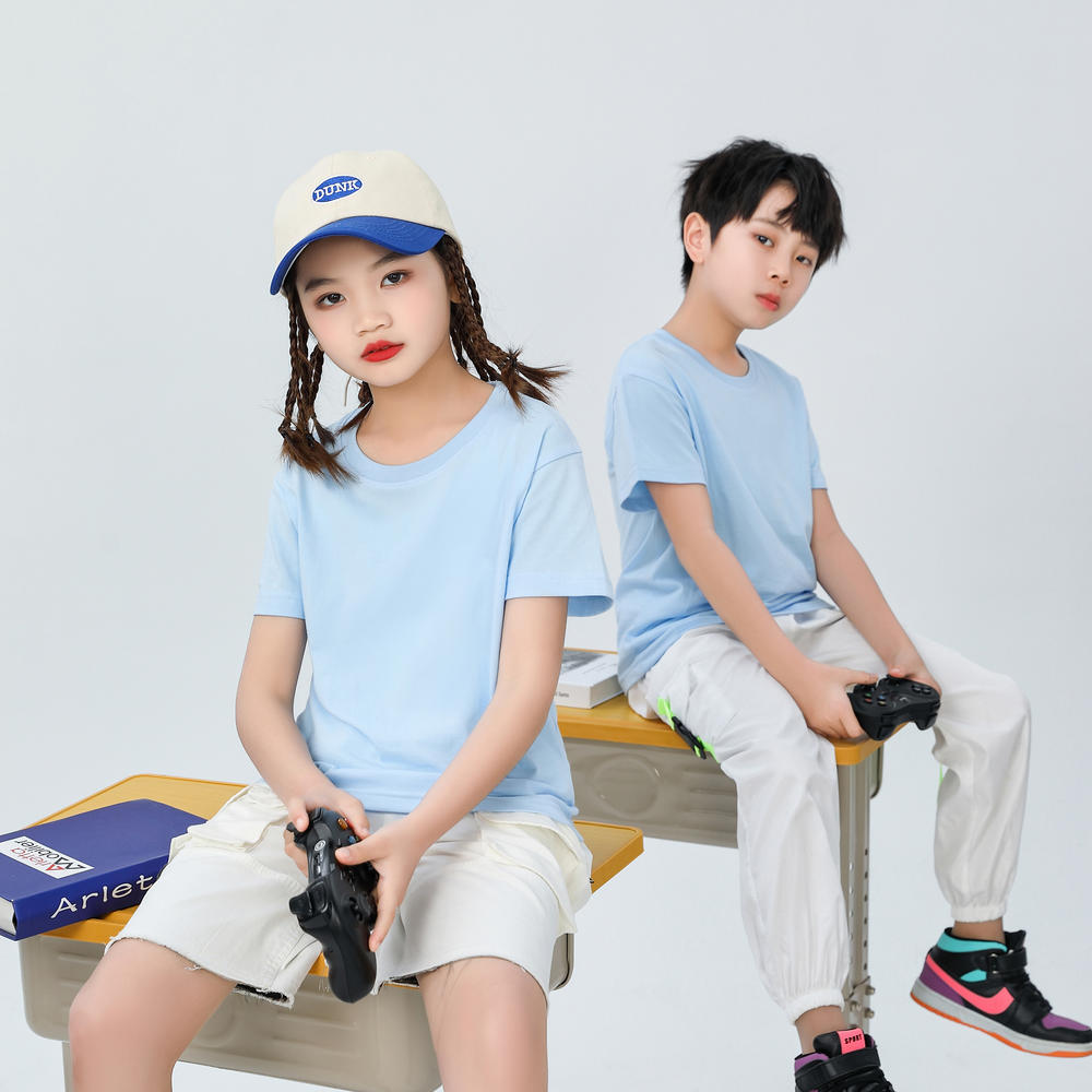 220 г детская футболка из чистого хлопка с короткими рукавами, рубашка с круглым вырезом, классная униформа, рабочая форма с принтом логотипа, свободная