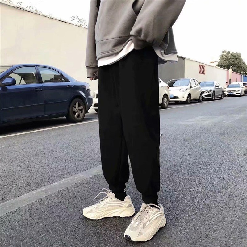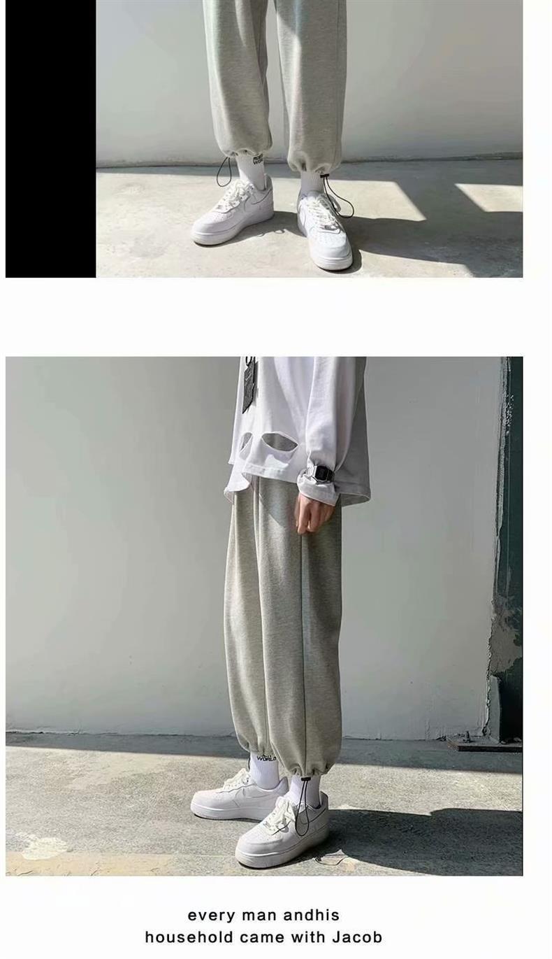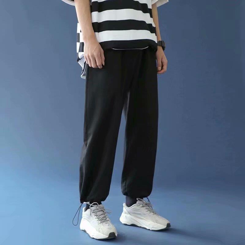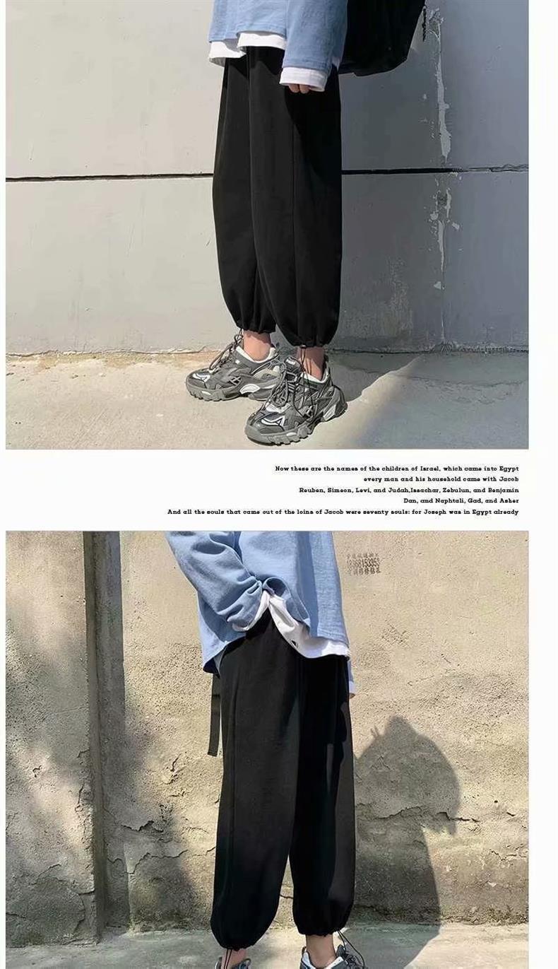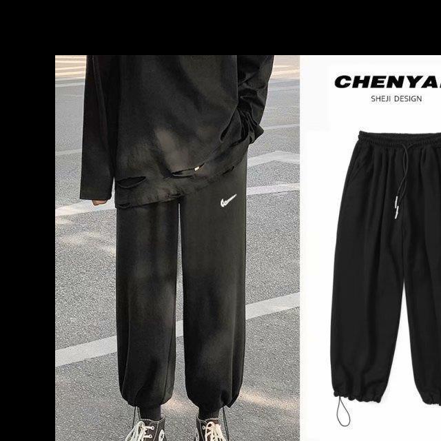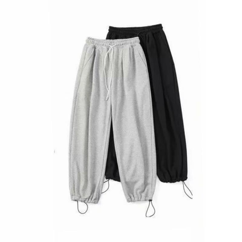 Однотонные брюки для пары в гонконгском стиле с завязками на щиколотке, модные спортивные брюки, студенческие широкие брюки в Корейском стиле, свободные брюки для похудения